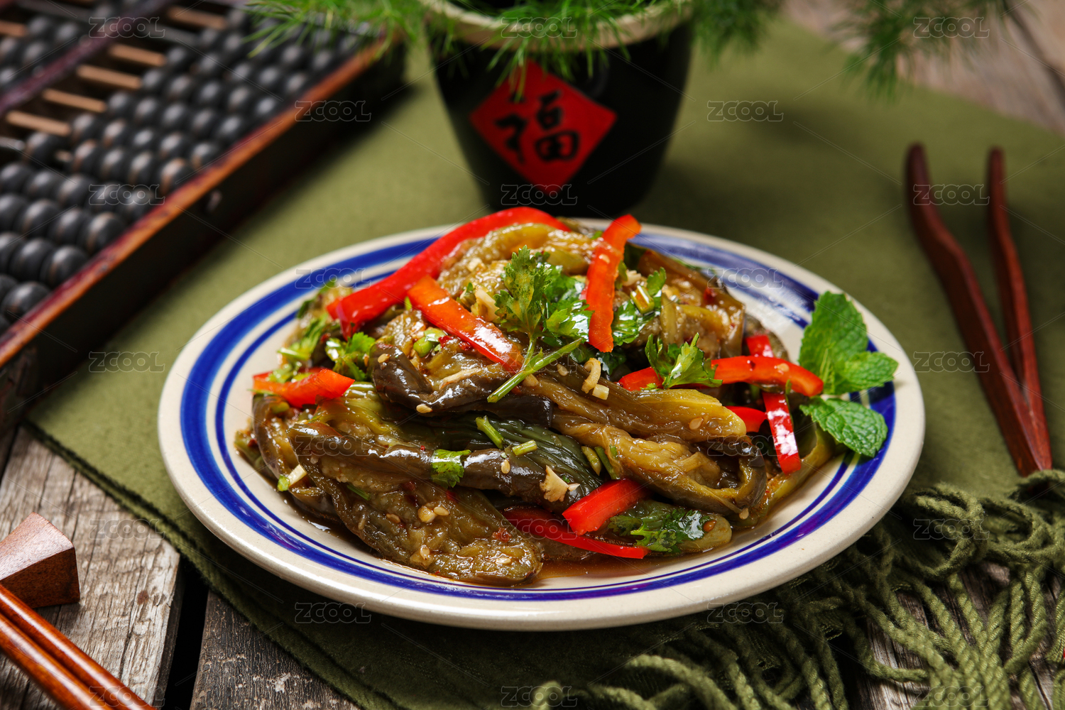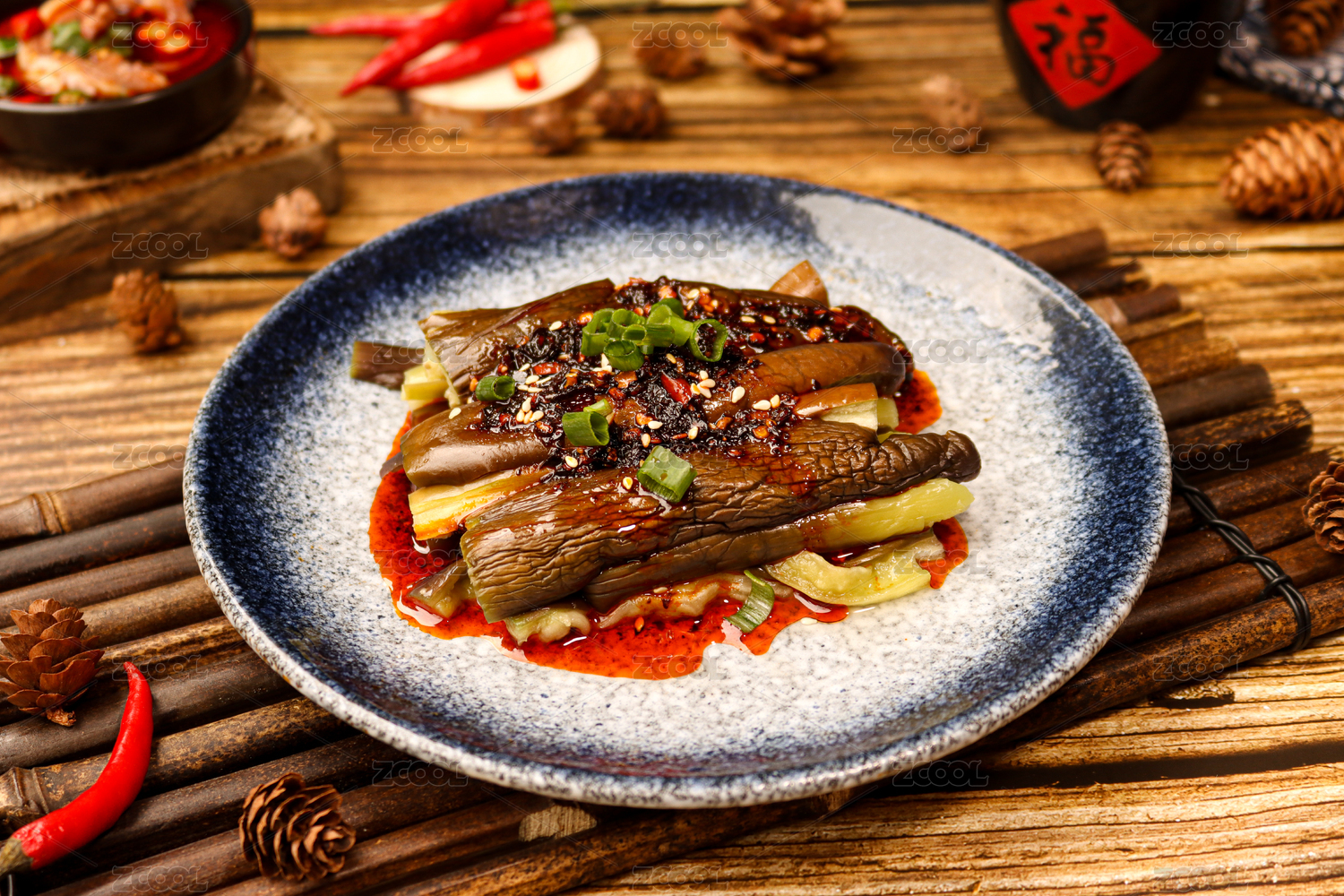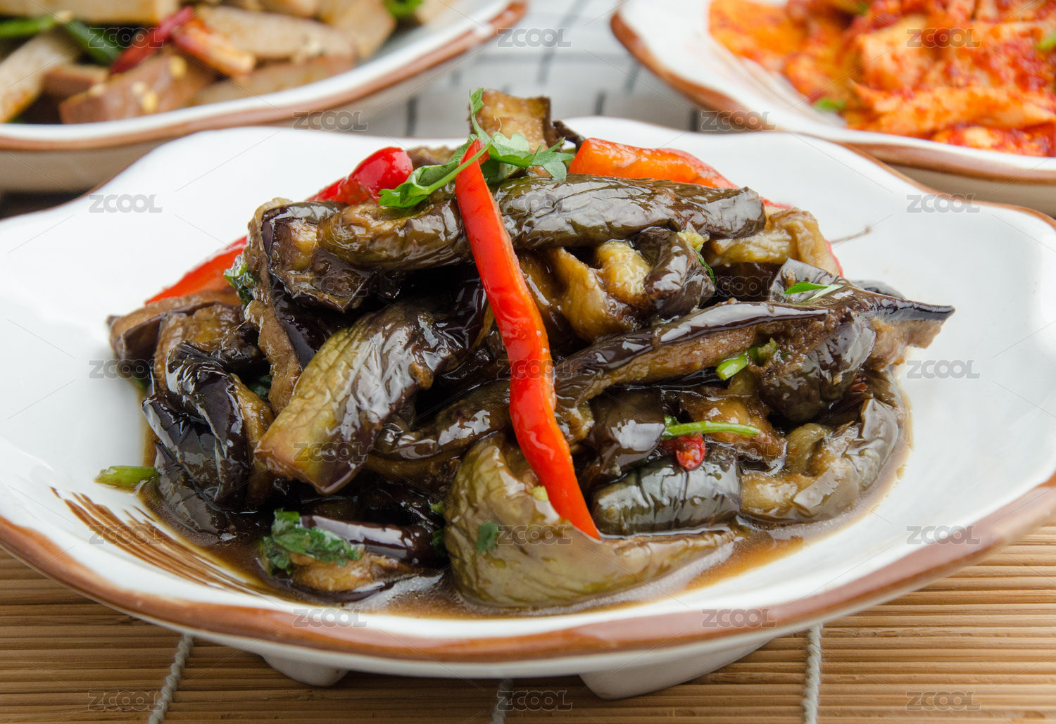中式菜肴紅辣椒涼拌茄子
