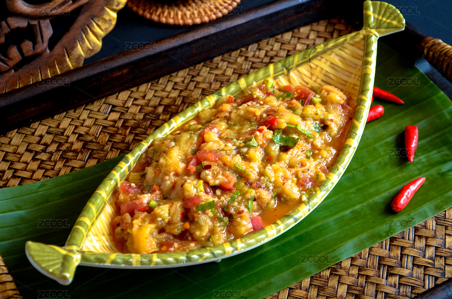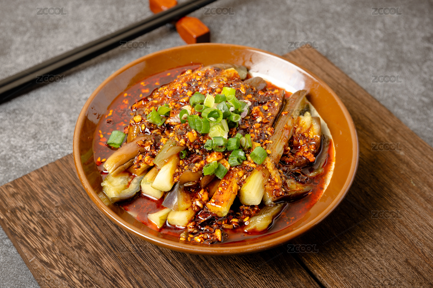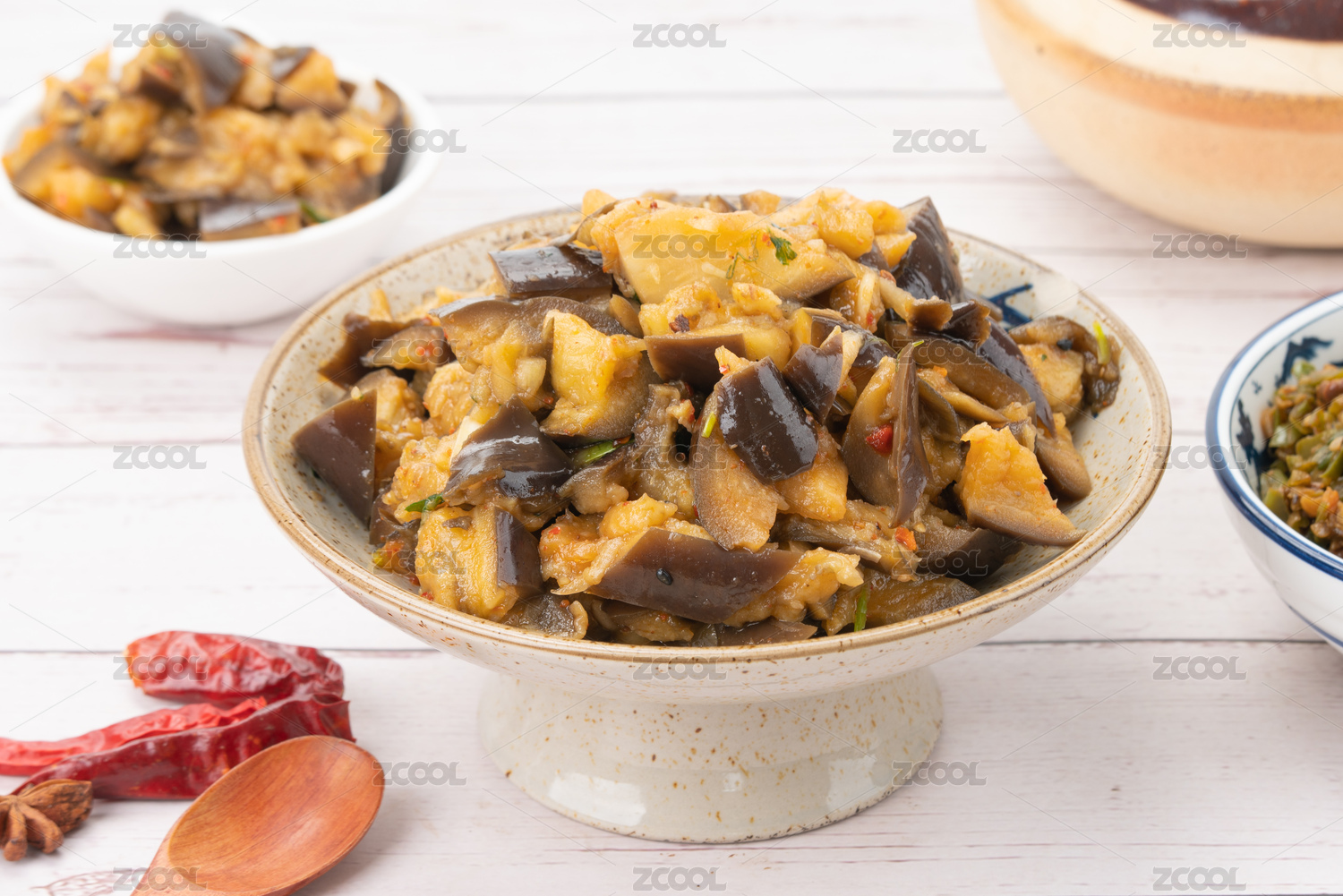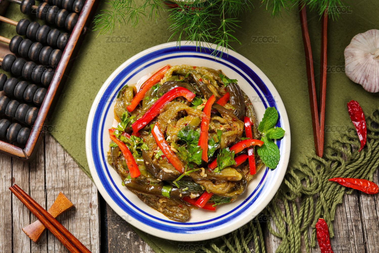 中式菜肴紅辣椒涼拌茄子
