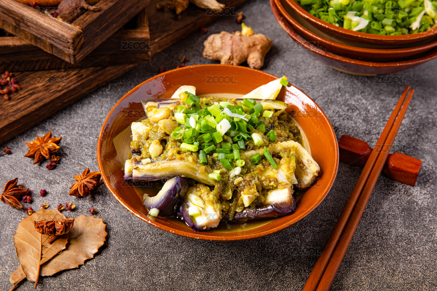 特色美食菜肴火燒涼拌茄子