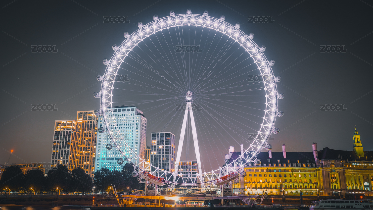 英國夜晚亮光的倫敦眼摩天輪