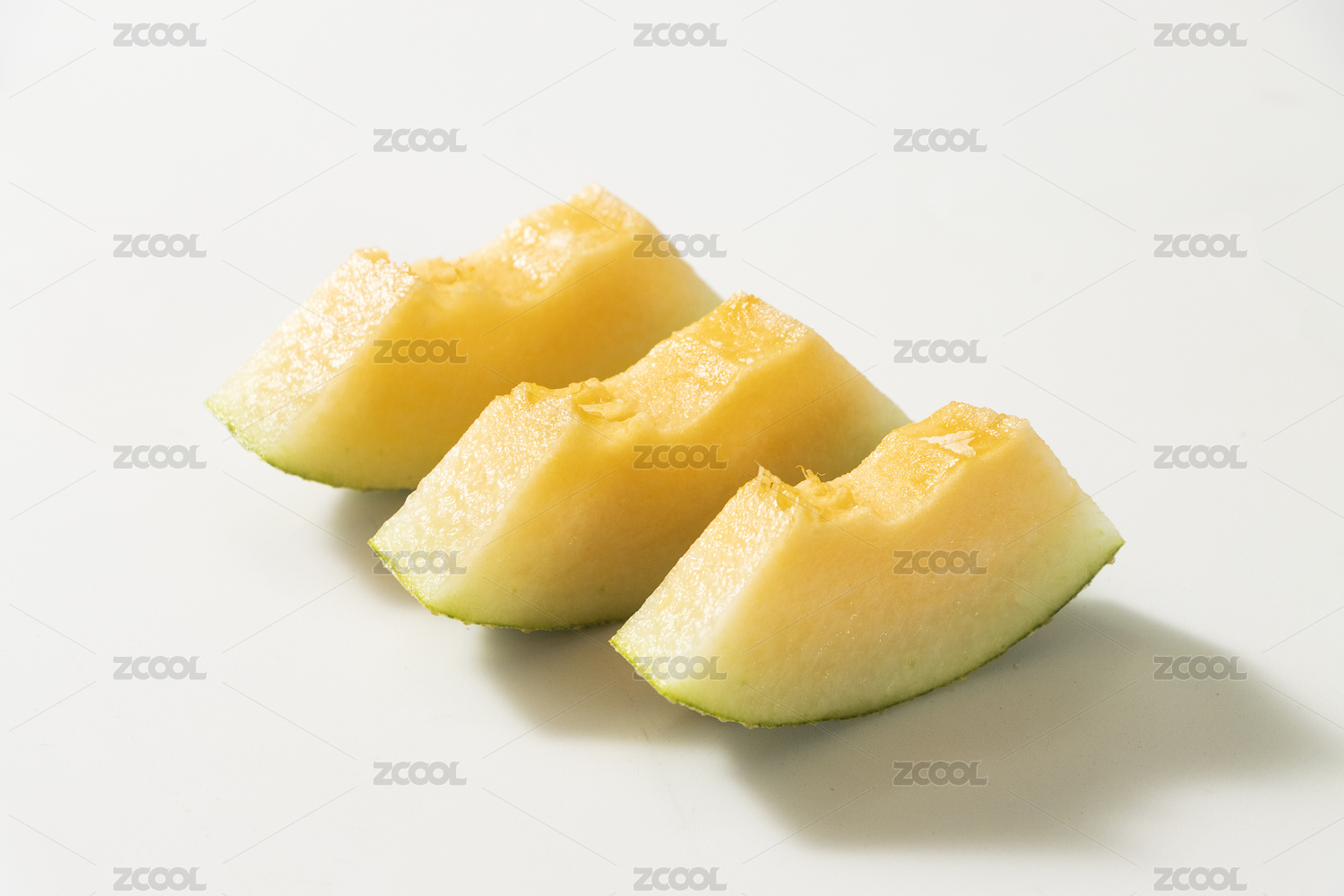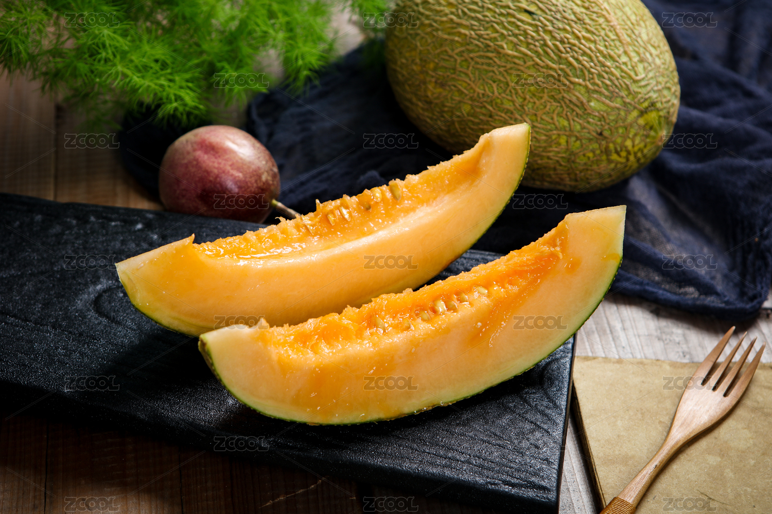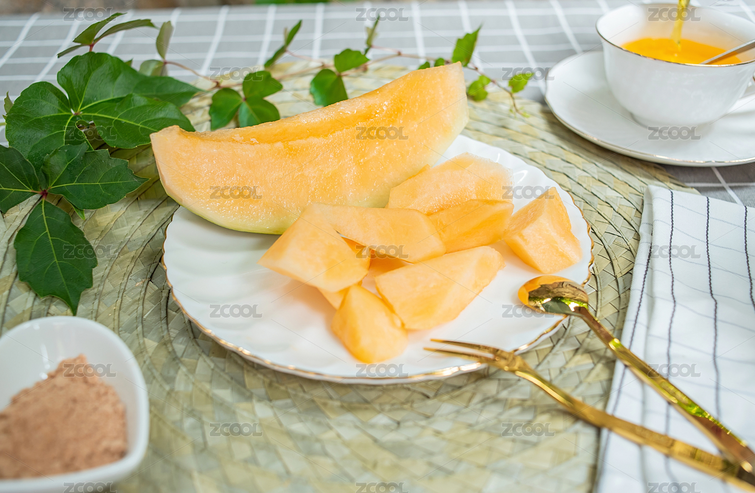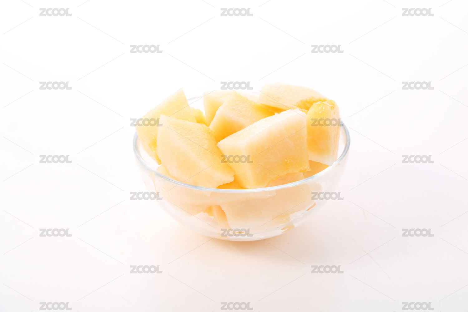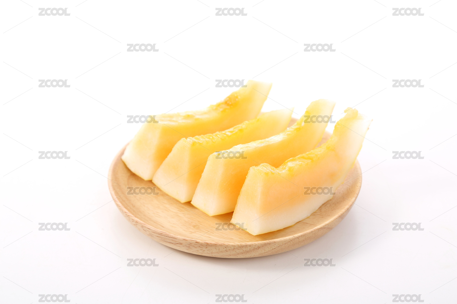 放在大理石背景碟子里切塊的黃河蜜瓜果肉塊