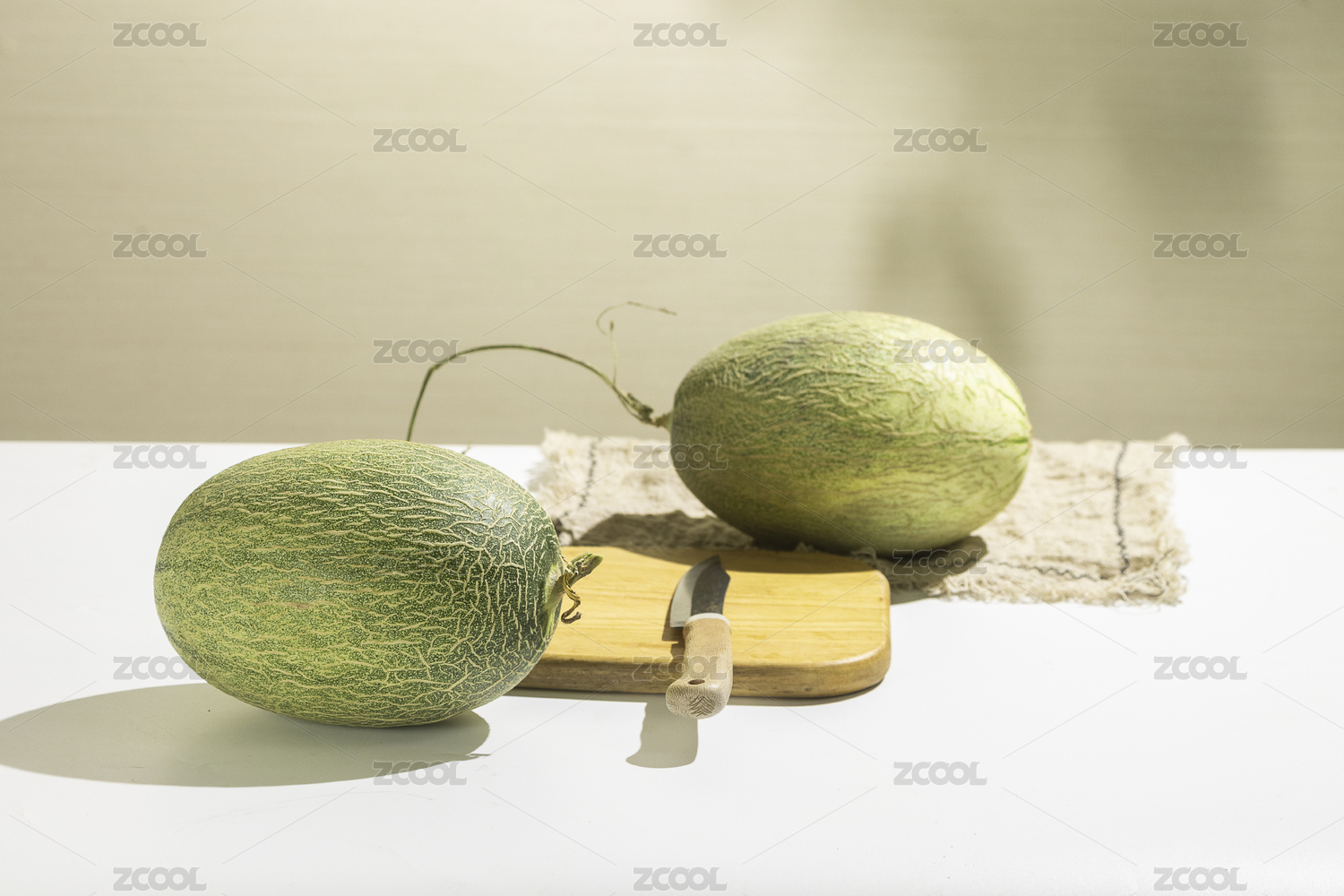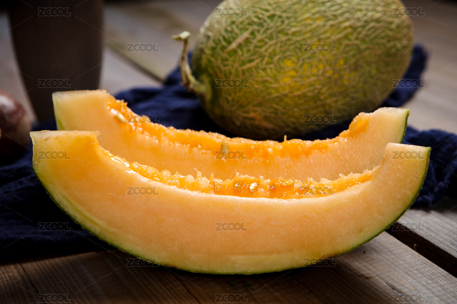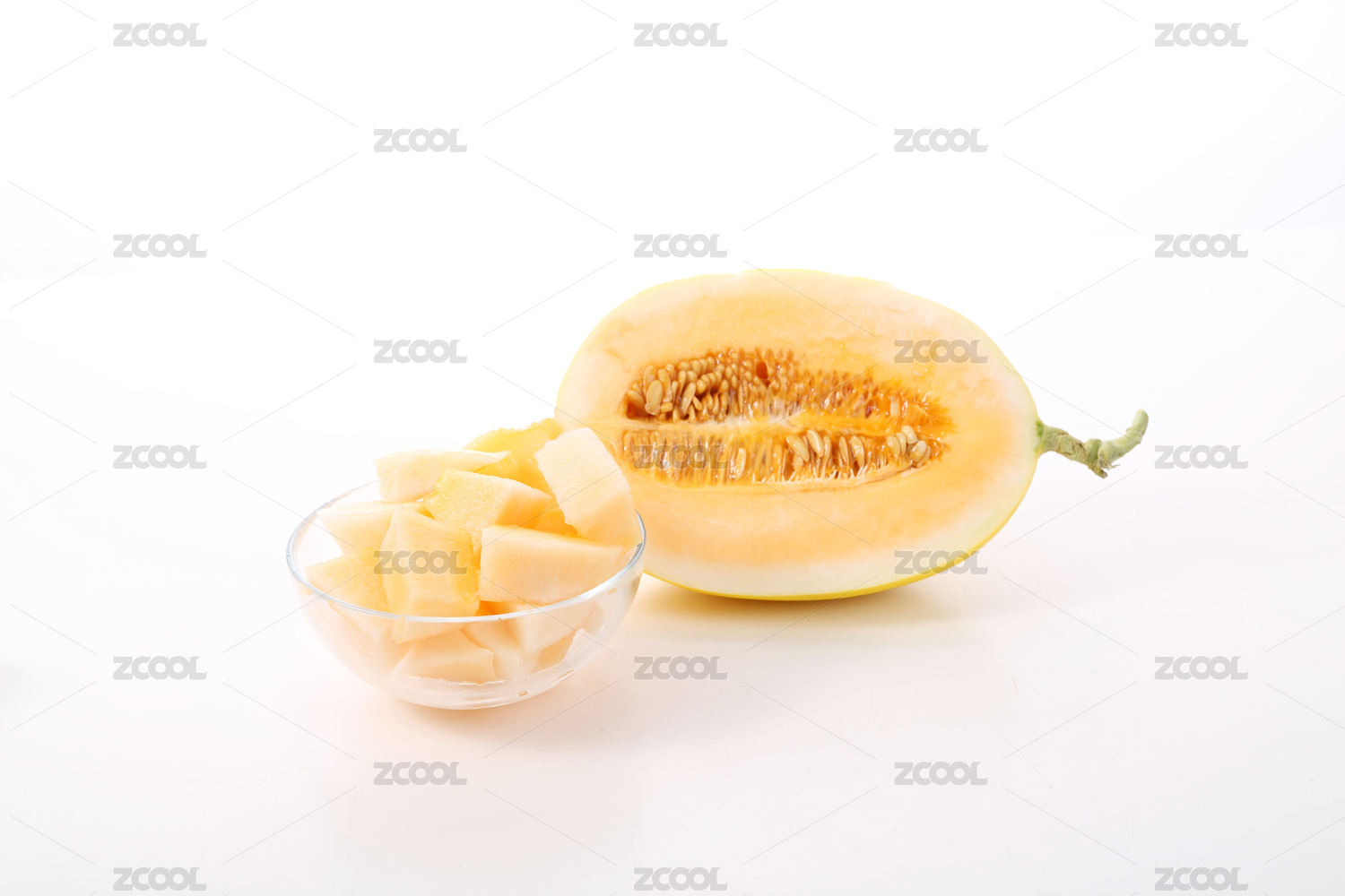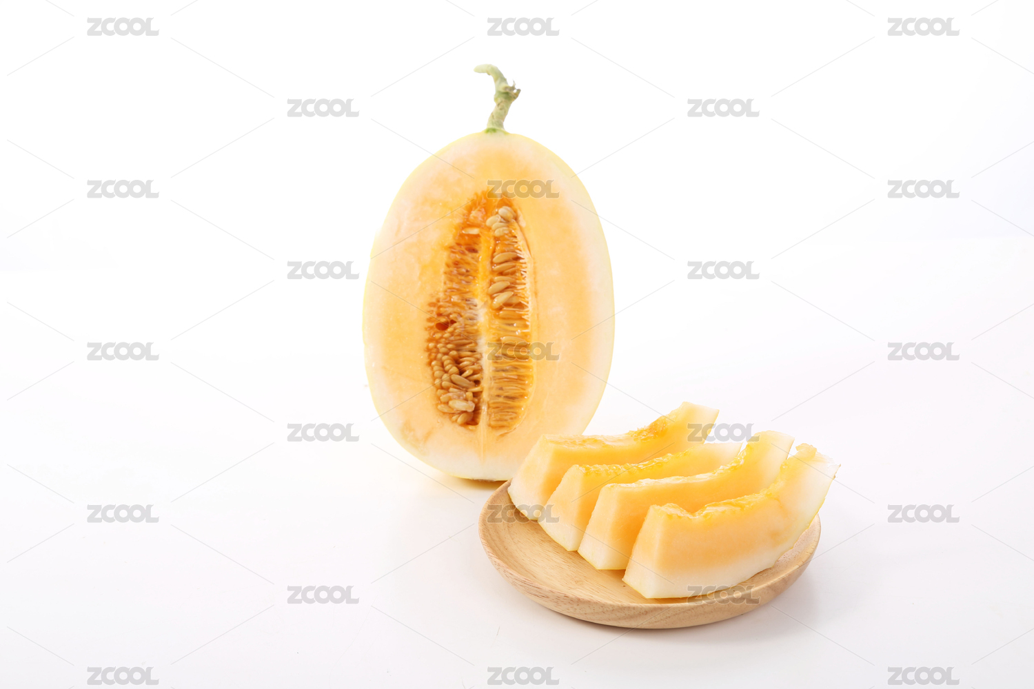 放在大理石背景碟子里切塊的黃河蜜瓜果肉塊