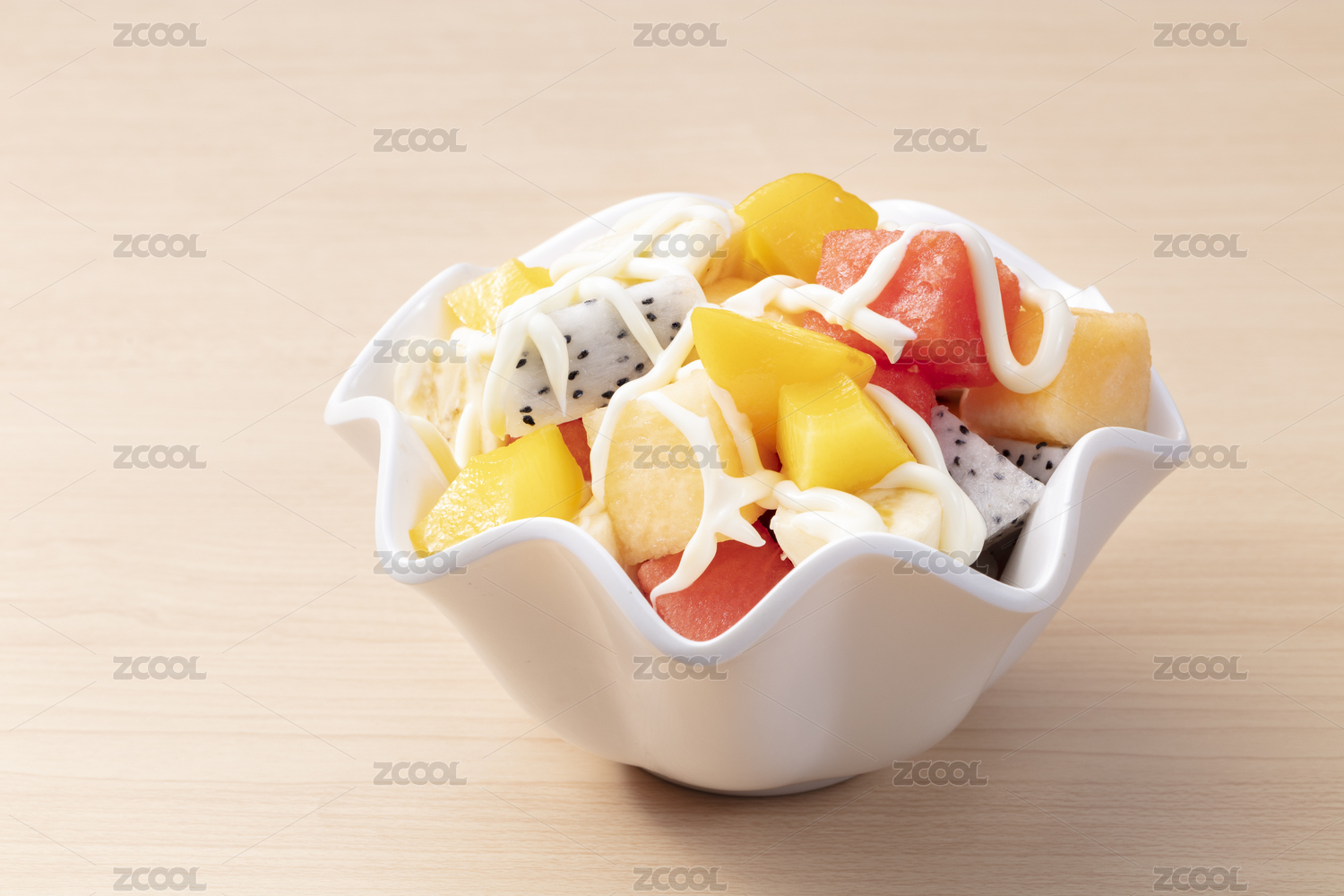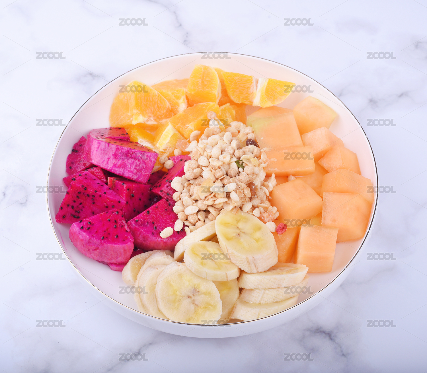 盤子里的芒果火龍果哈蜜瓜西瓜水果沙拉