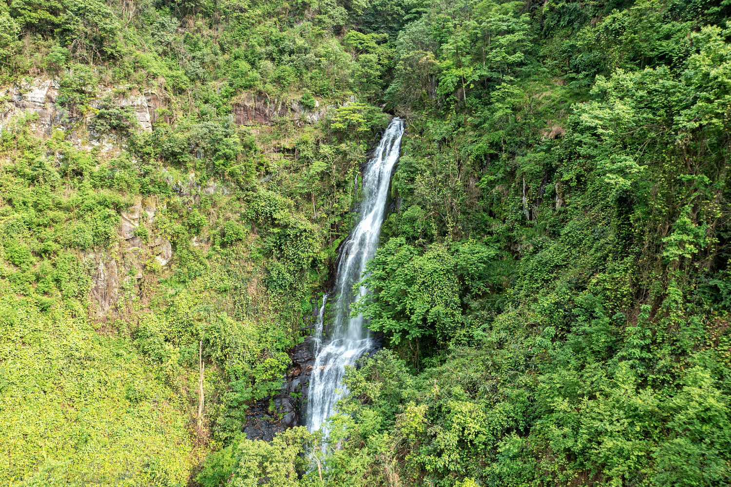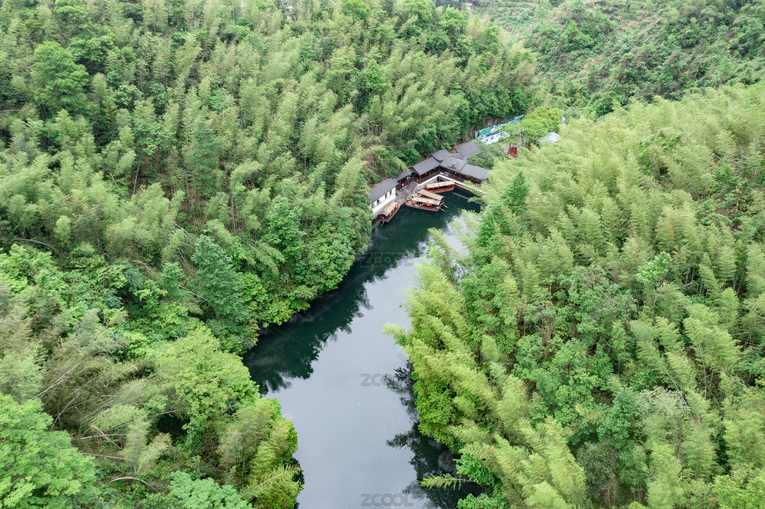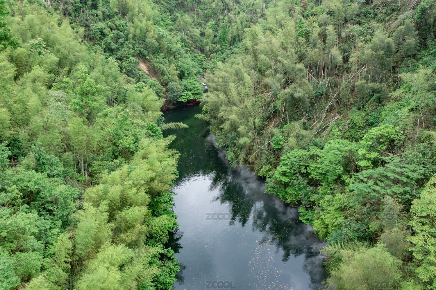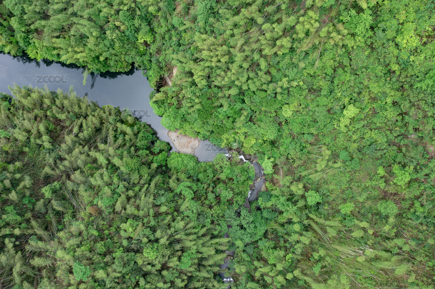 航拍中國湖南周洛大峽谷鴛鴦瀑布