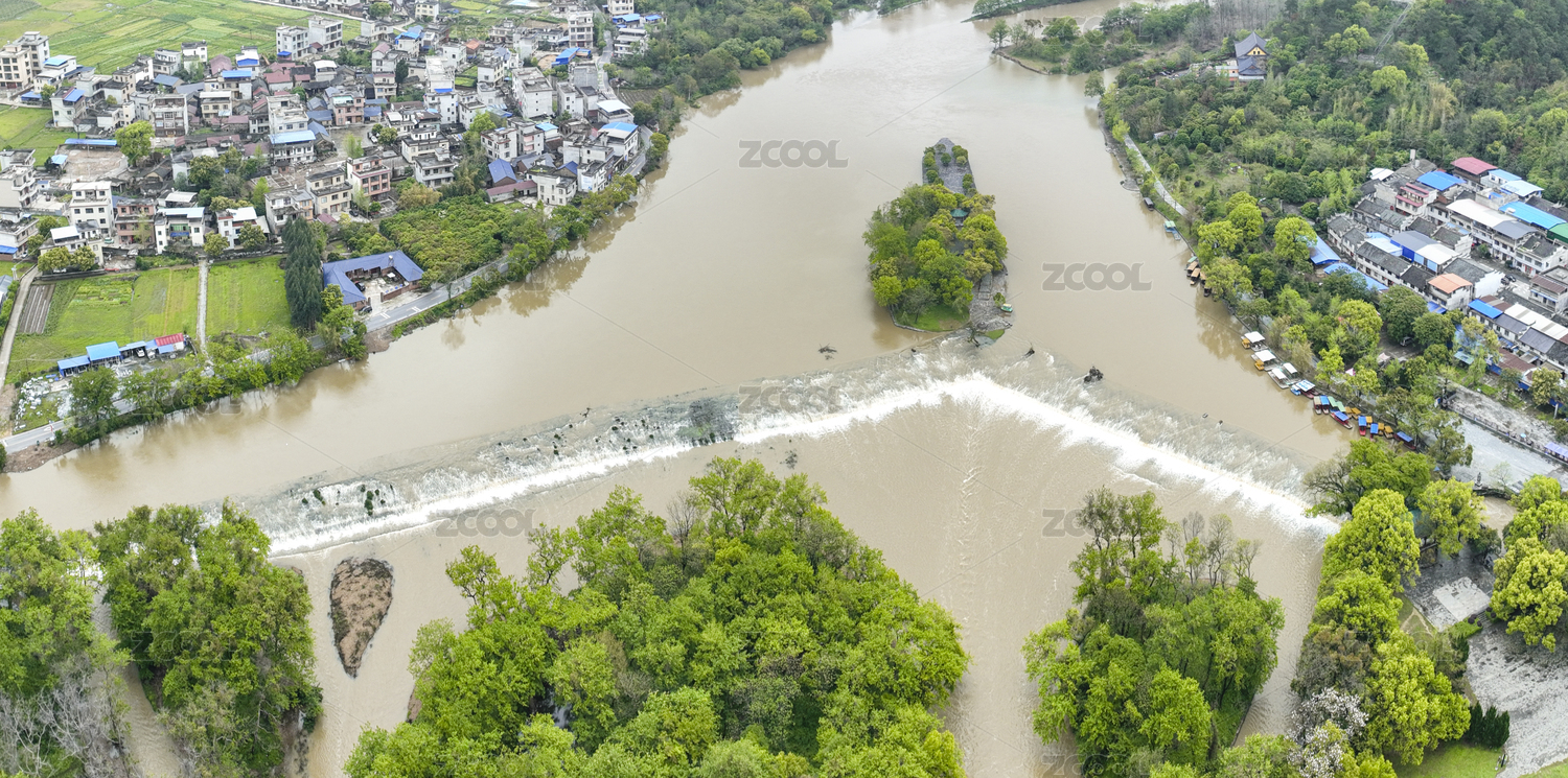 航拍桂林興安靈渠古代水利工程
