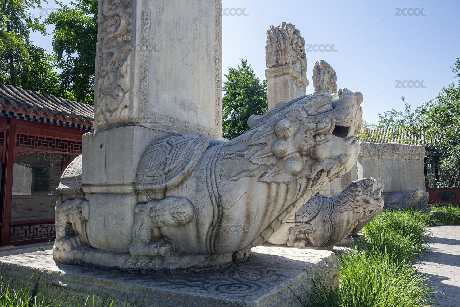 清代的祠墓碑,大型石雕神獸赑屃細節(jié)精致