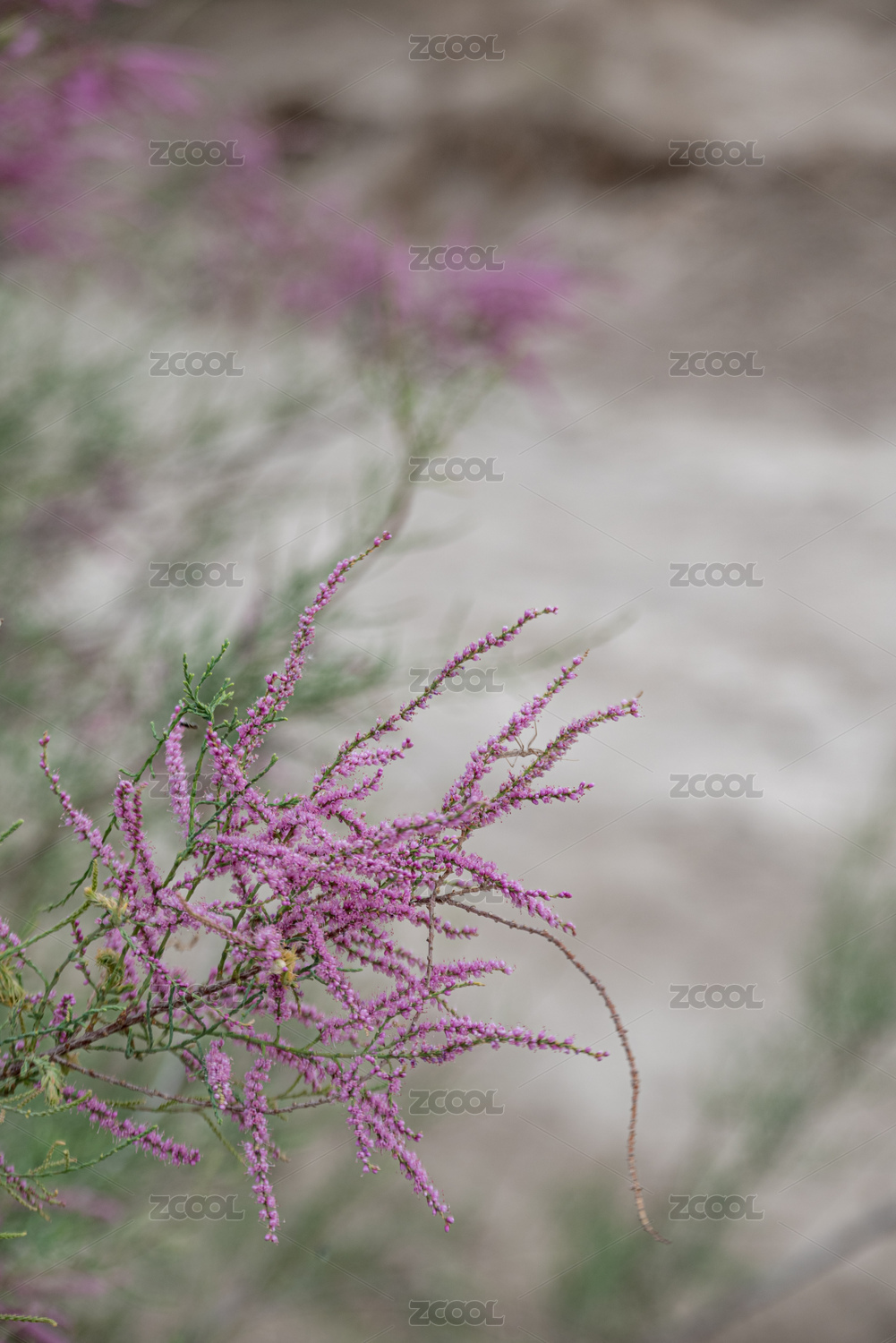 沙漠中盛開的紅柳花絮
