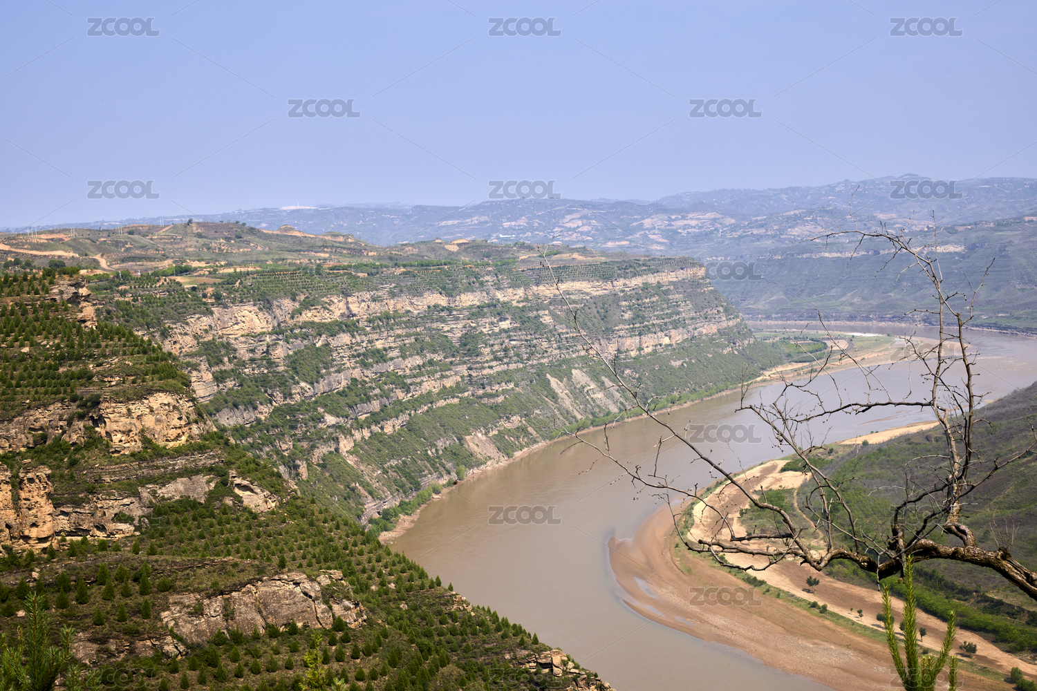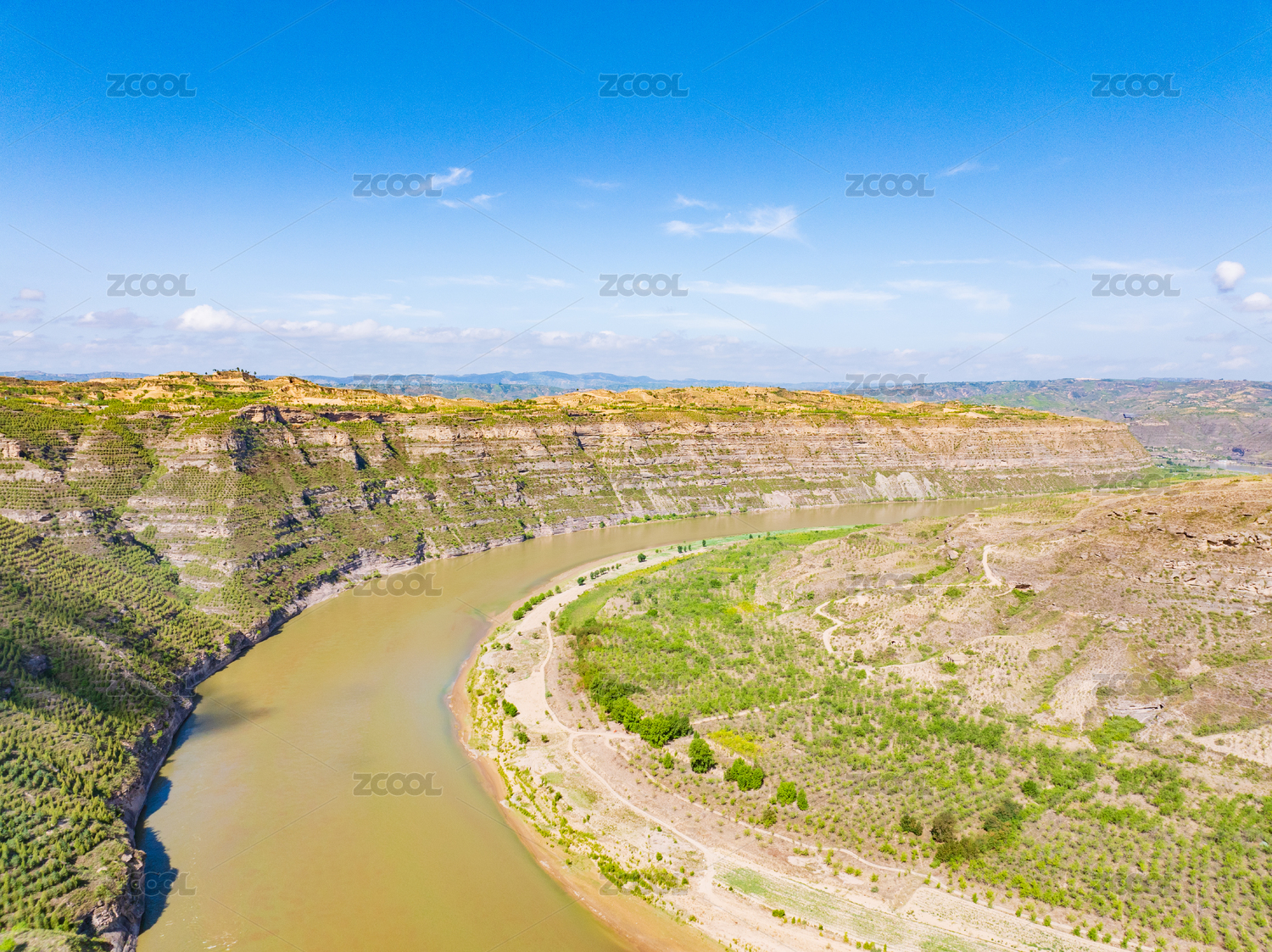 山西臨汾永和黃河蛇曲地質(zhì)公園夏日晴天
