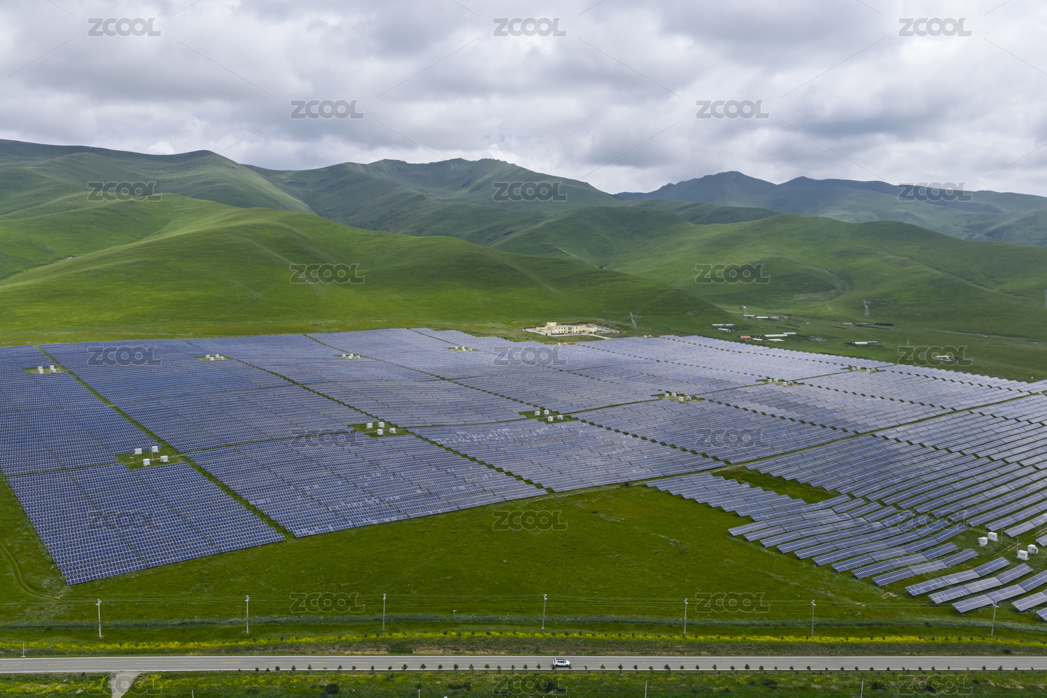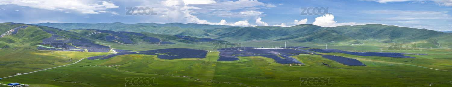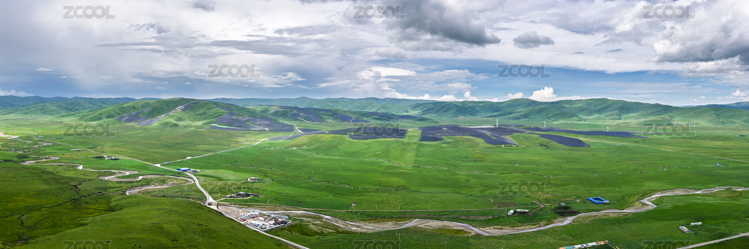 甘南阿壩縣草原上的太陽(yáng)能光伏發(fā)電場(chǎng)