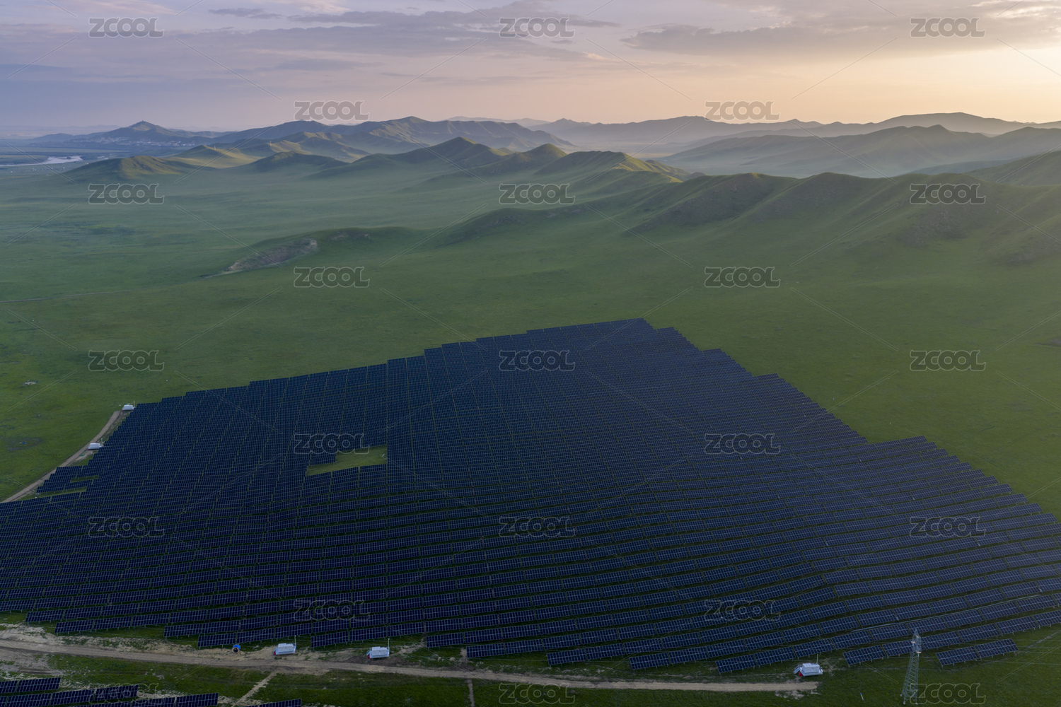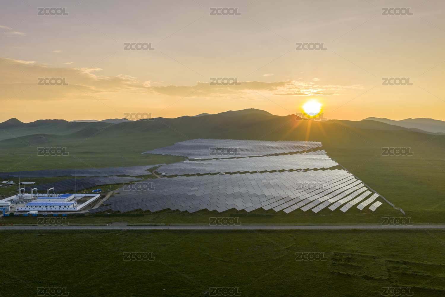 阿壩州紅原縣草原上的太陽(yáng)能光伏發(fā)電場(chǎng)