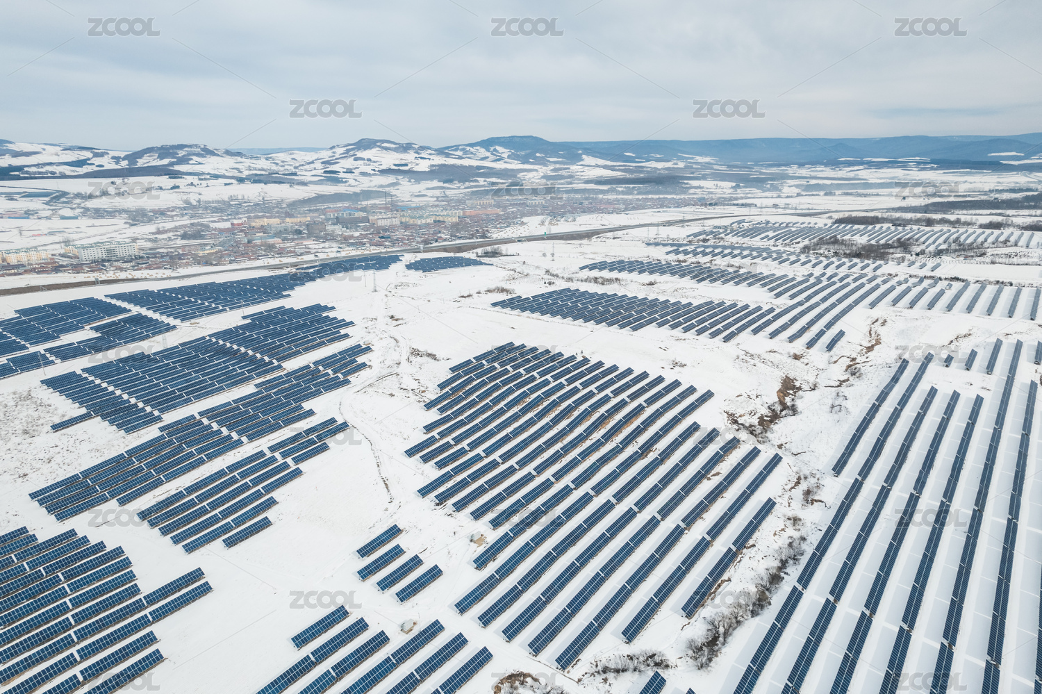 吉林延邊雪原光伏發(fā)電場(chǎng)航拍景觀