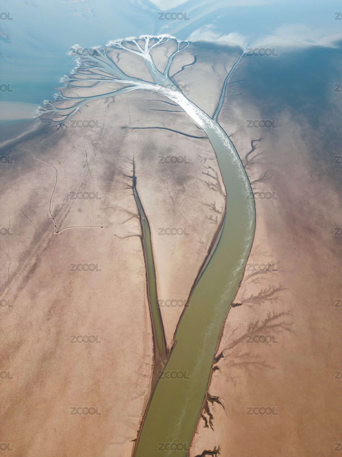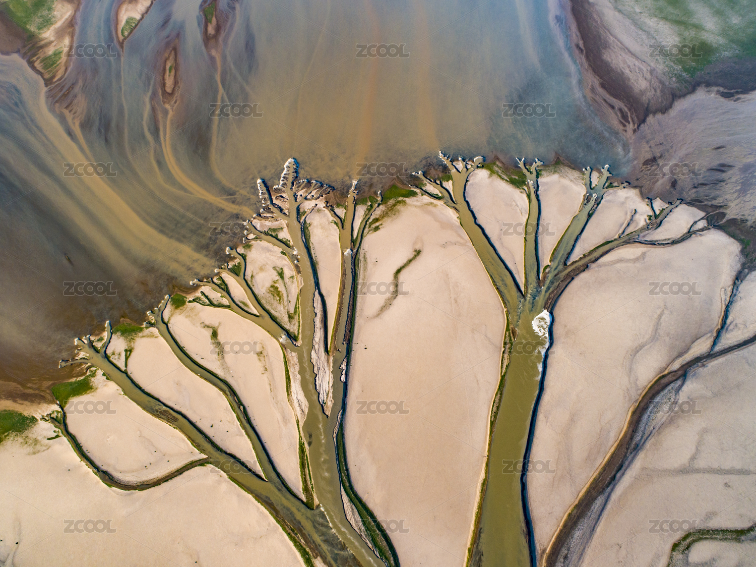 閩江江水拍打在岸邊的沙灘的留下大地之樹