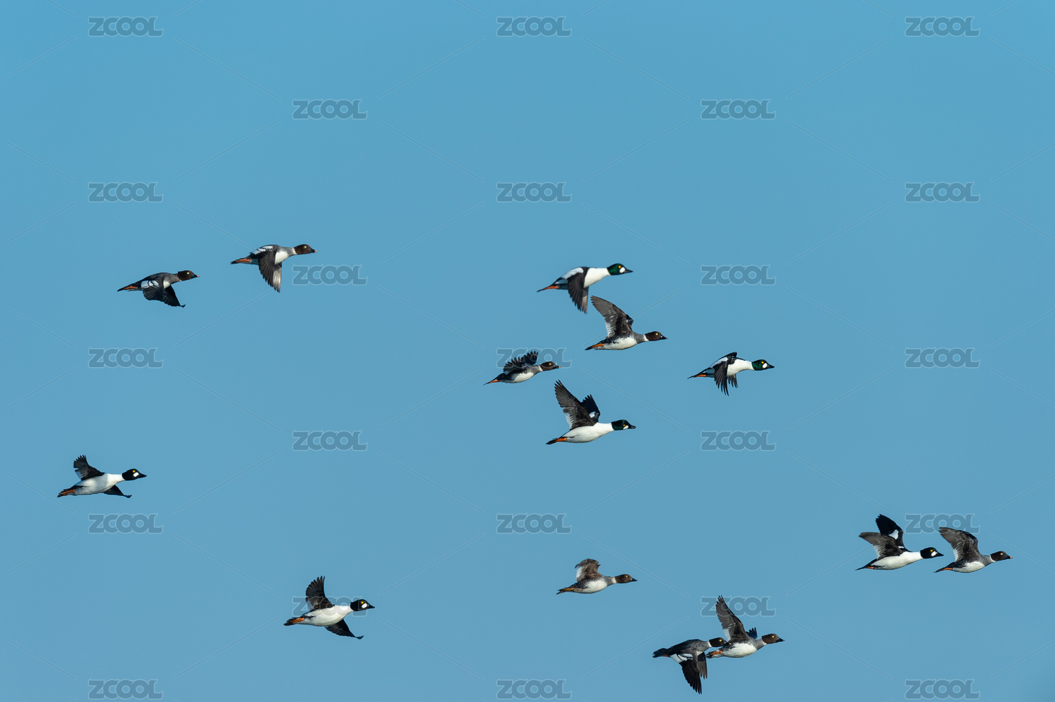 在藍(lán)天中飛翔的群鳥