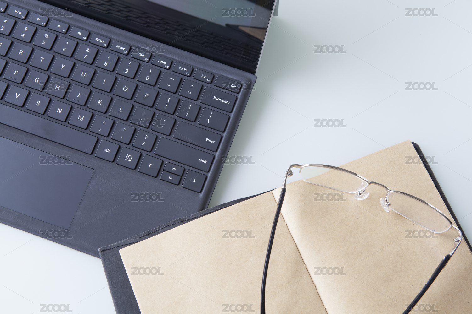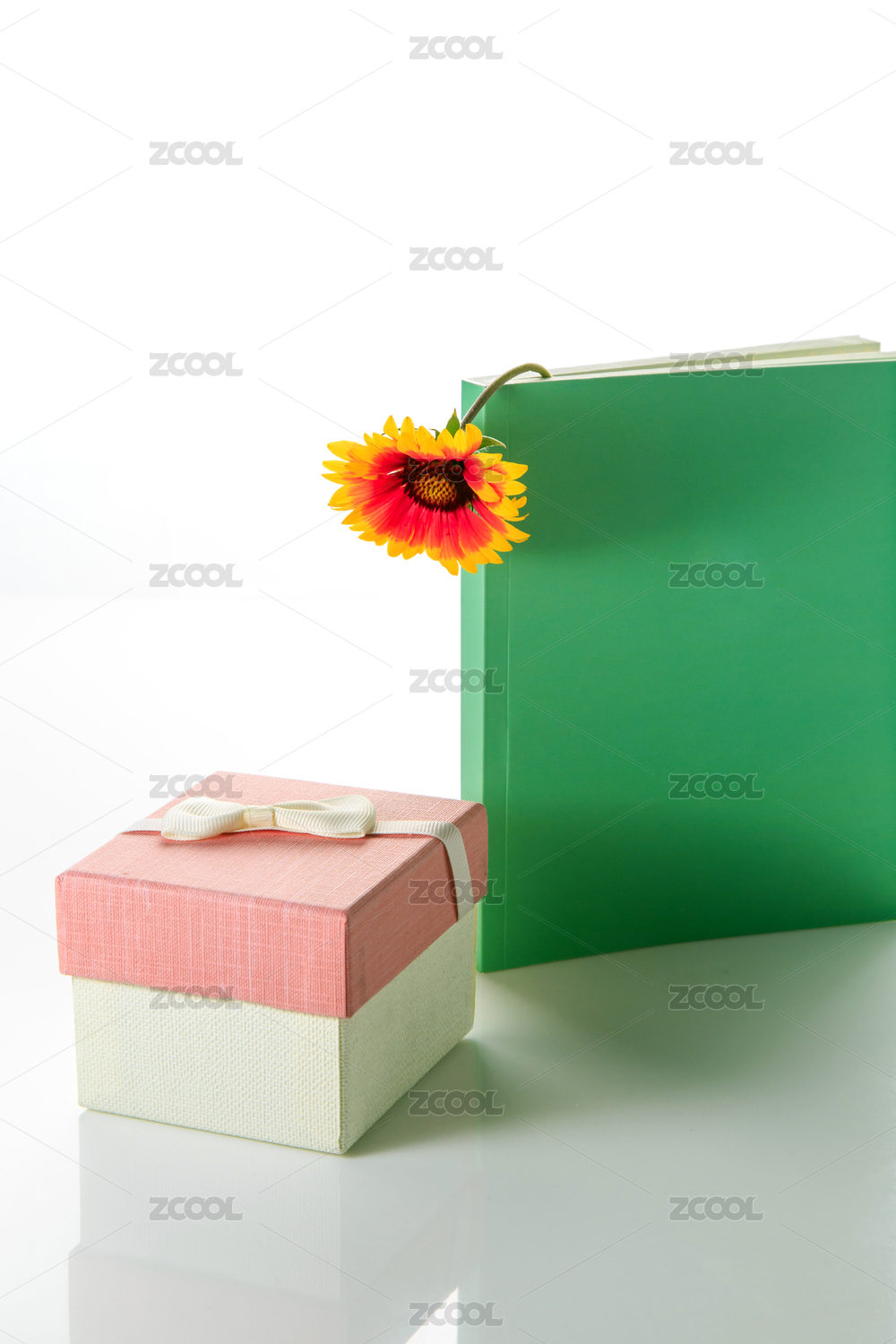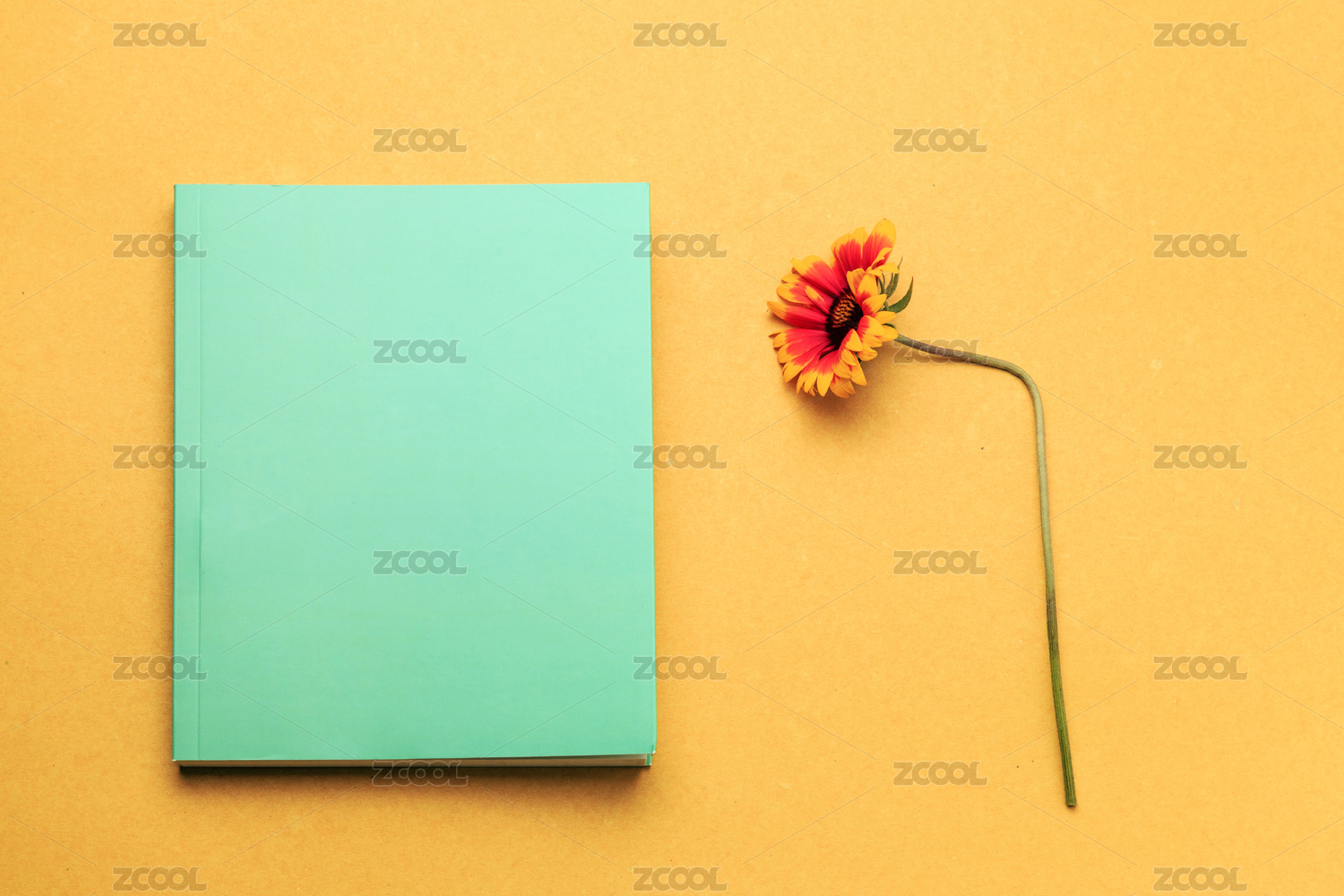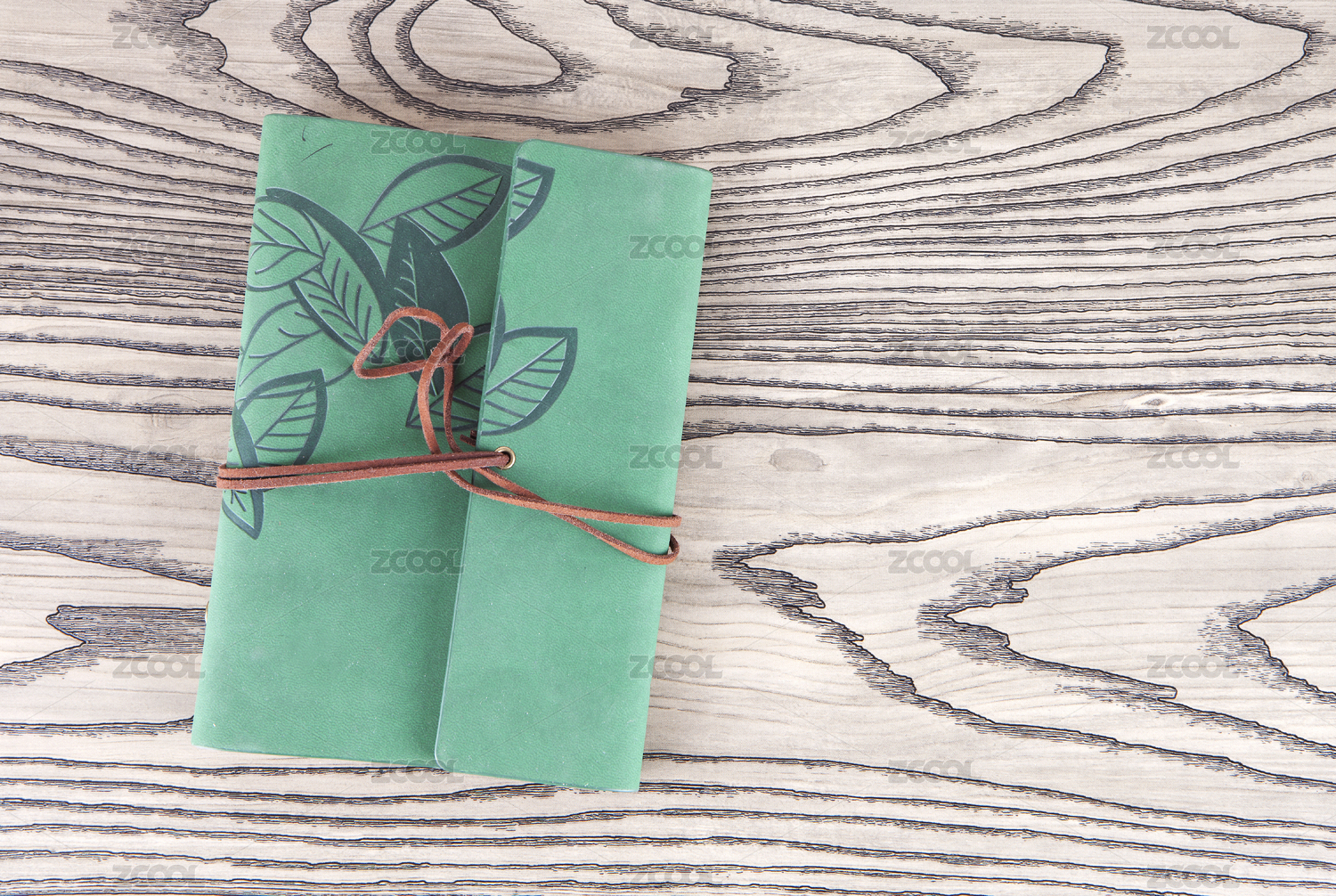木桌上擺放著打開的日記本和一支筆一株綠植