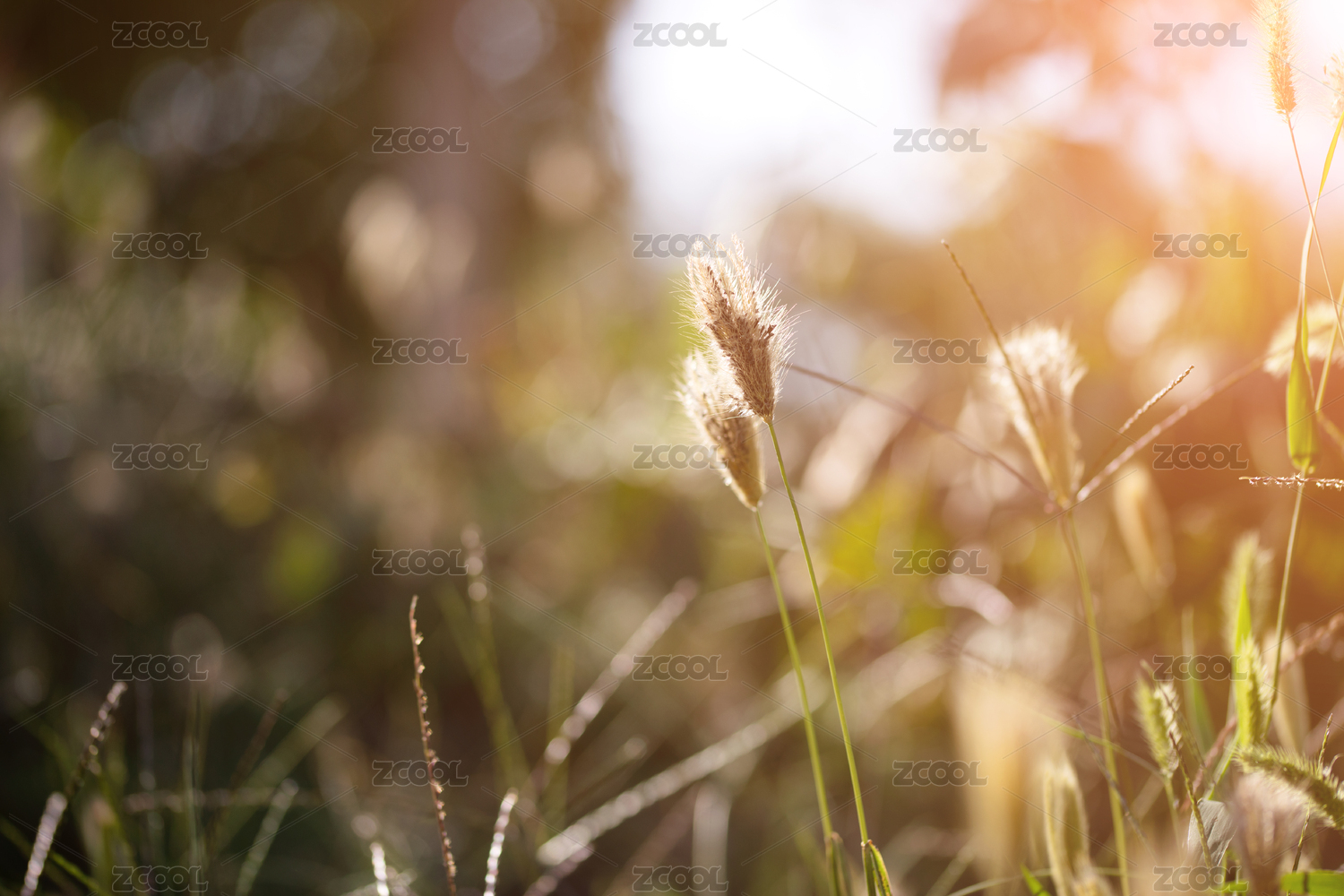 秋日陽(yáng)光大角度斜射下的虎尾草叢