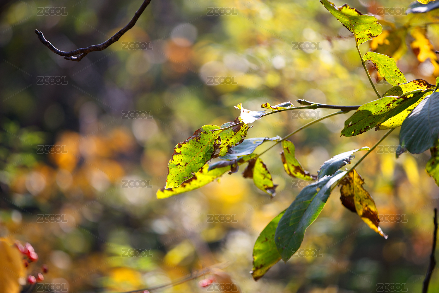 秋天逐漸變黃的樹葉