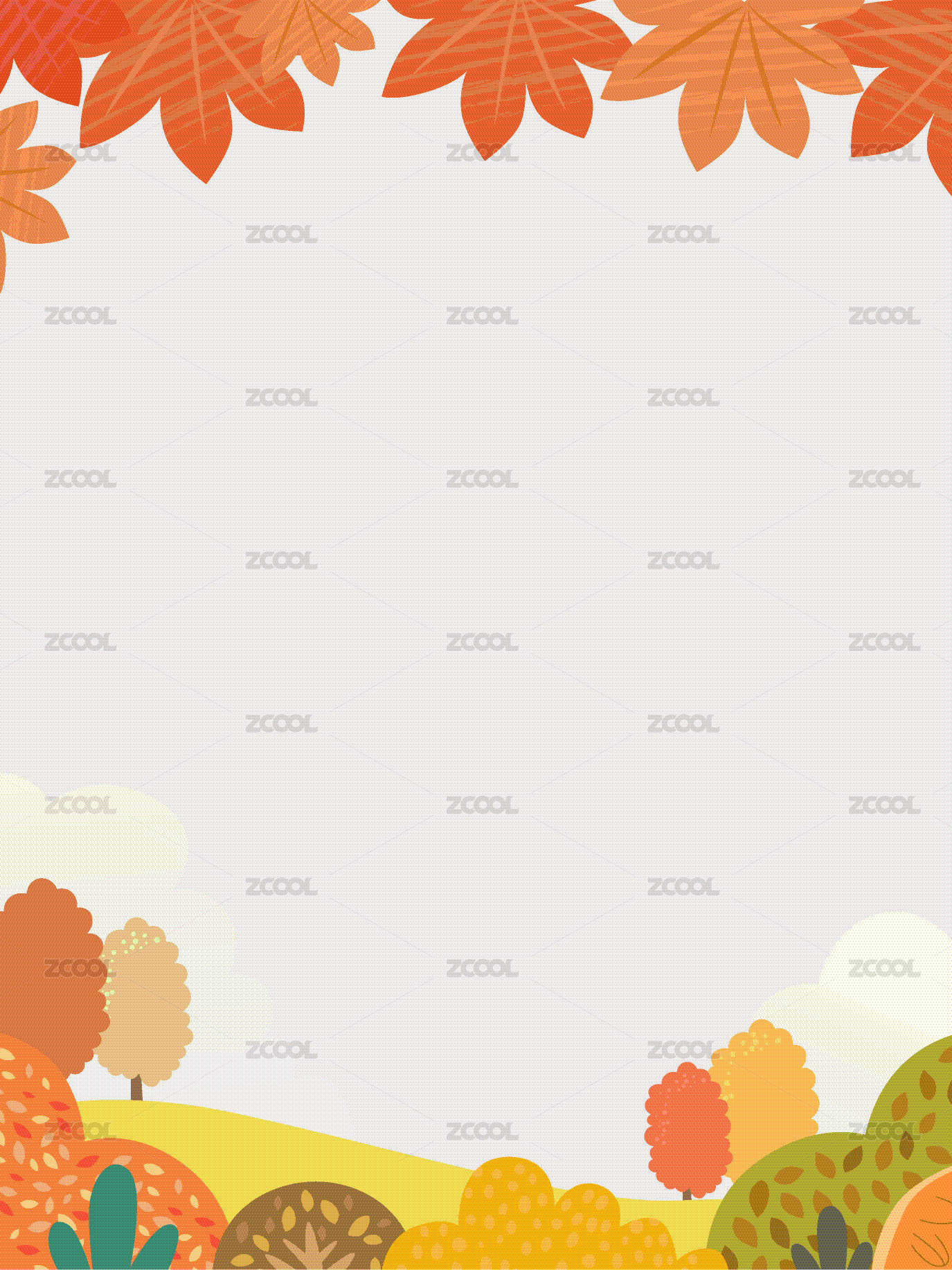 卡通秋天樹林樹葉變黃楓樹落葉插畫展板邊框