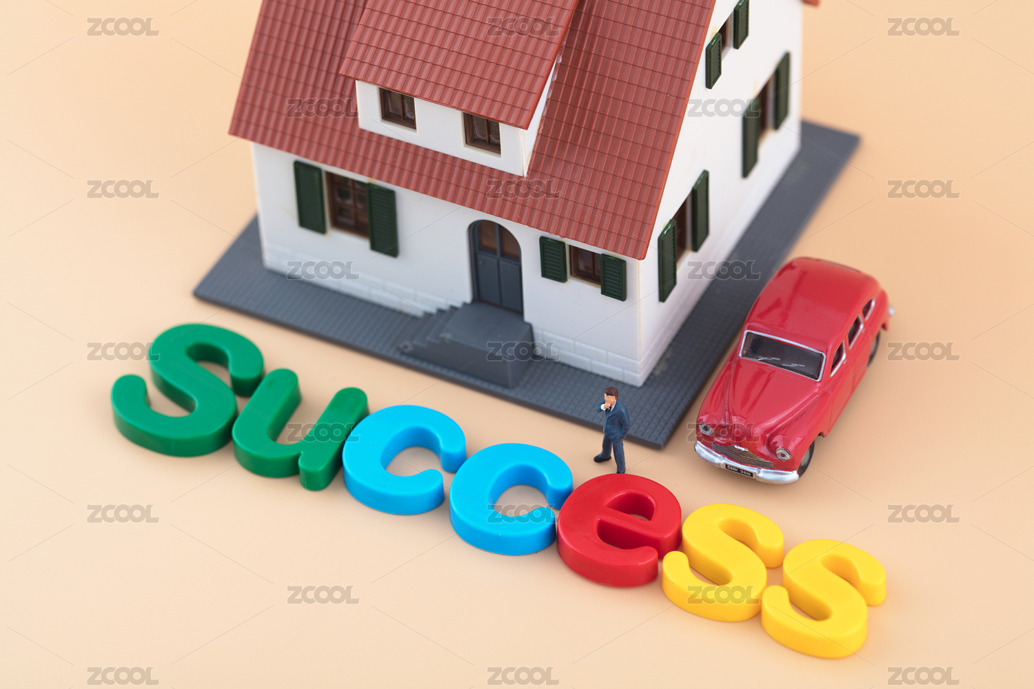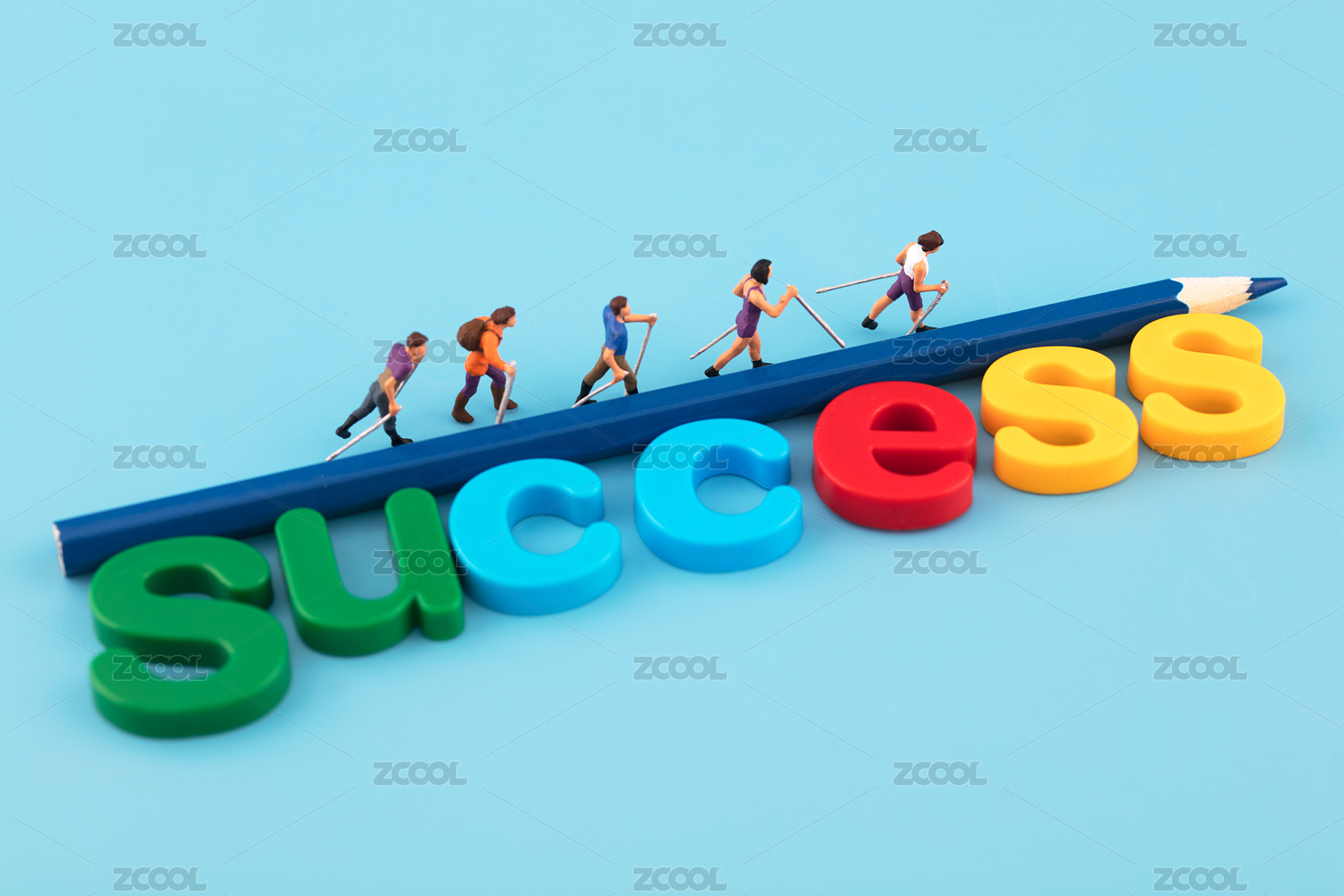 起跑線英文單詞彩色積木SUCCESS成功之路奔跑的上班族