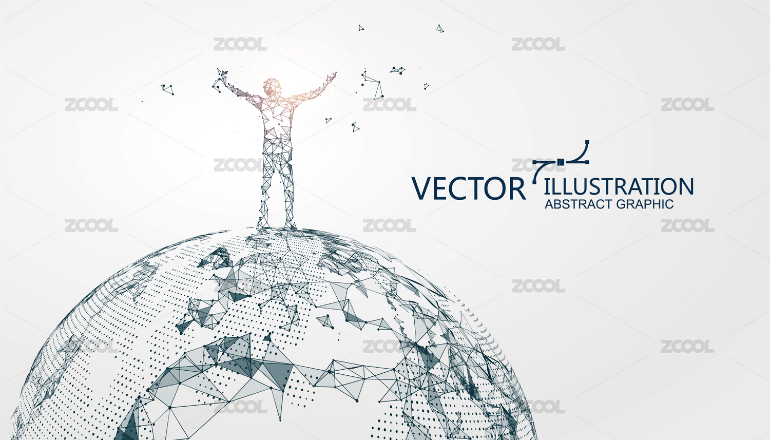 張開雙臂的人站在地球上,概念性的平面設(shè)計。