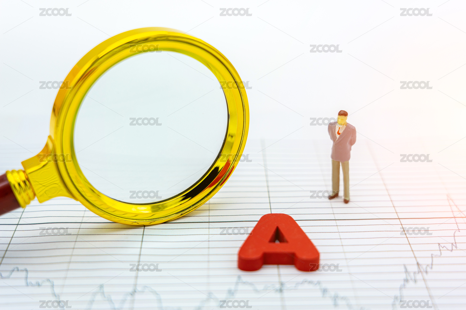 放大鏡觀察A股金融證券投資概念配圖