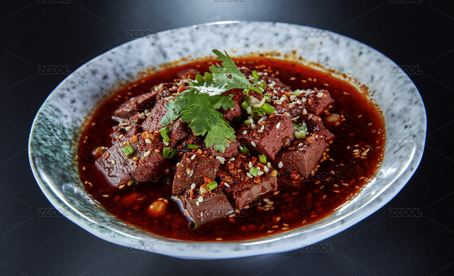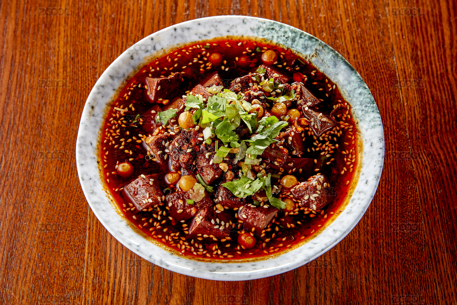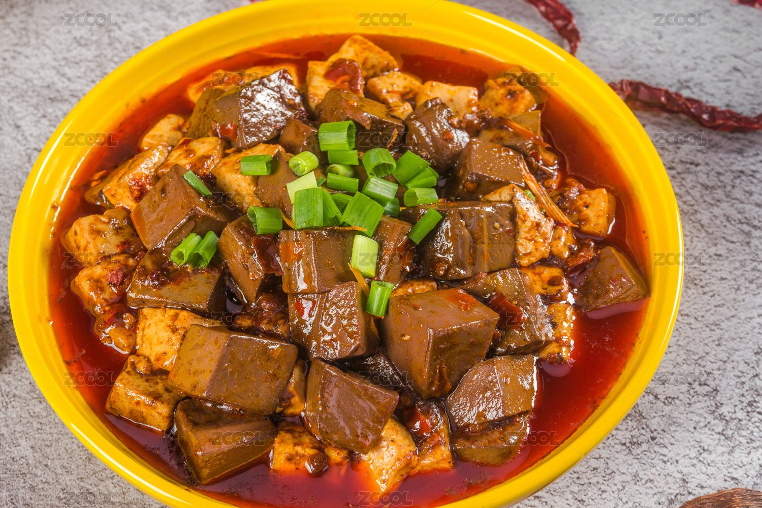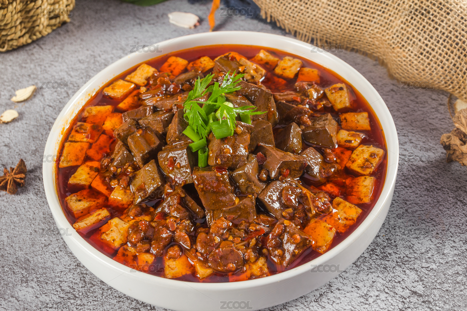 碗里的切成塊的麻辣鴨血