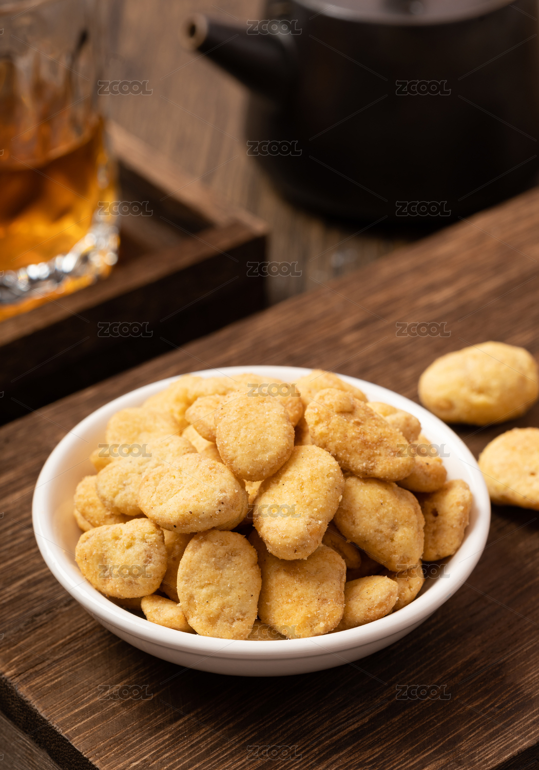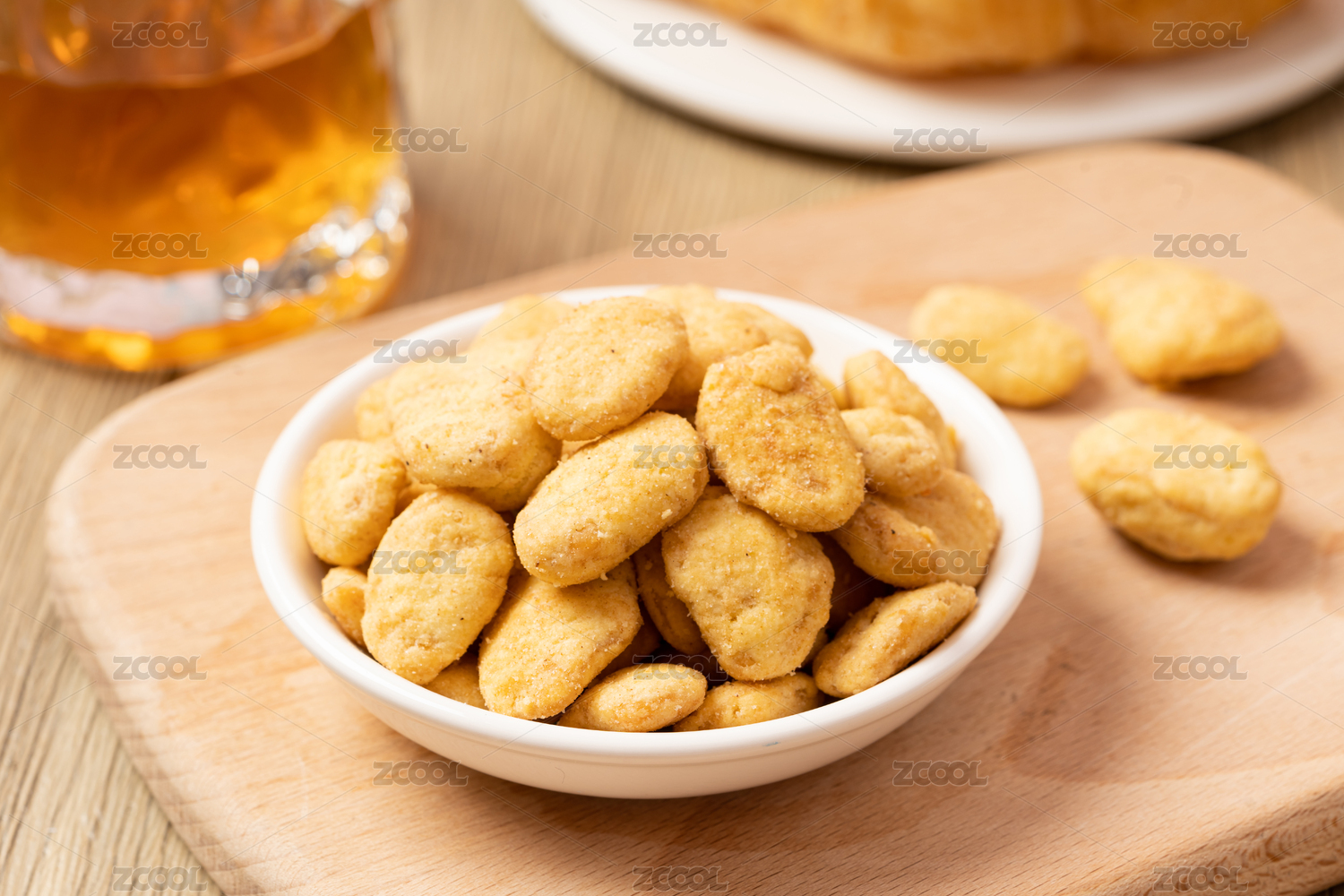 蟹黃蠶豆掉落白色背景瞬間高速抓拍
