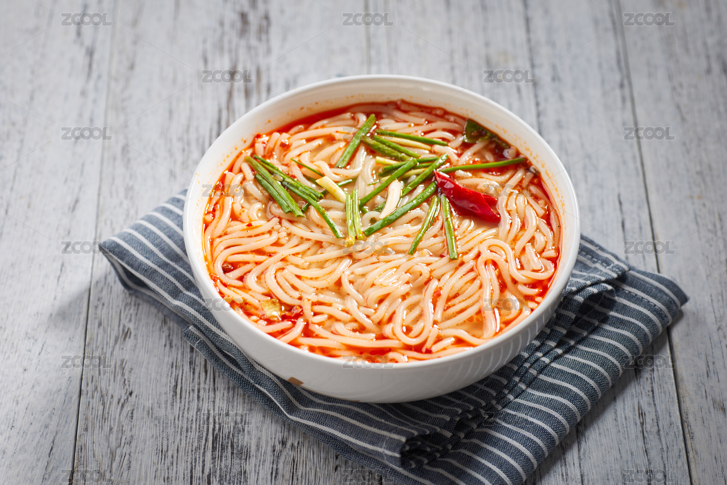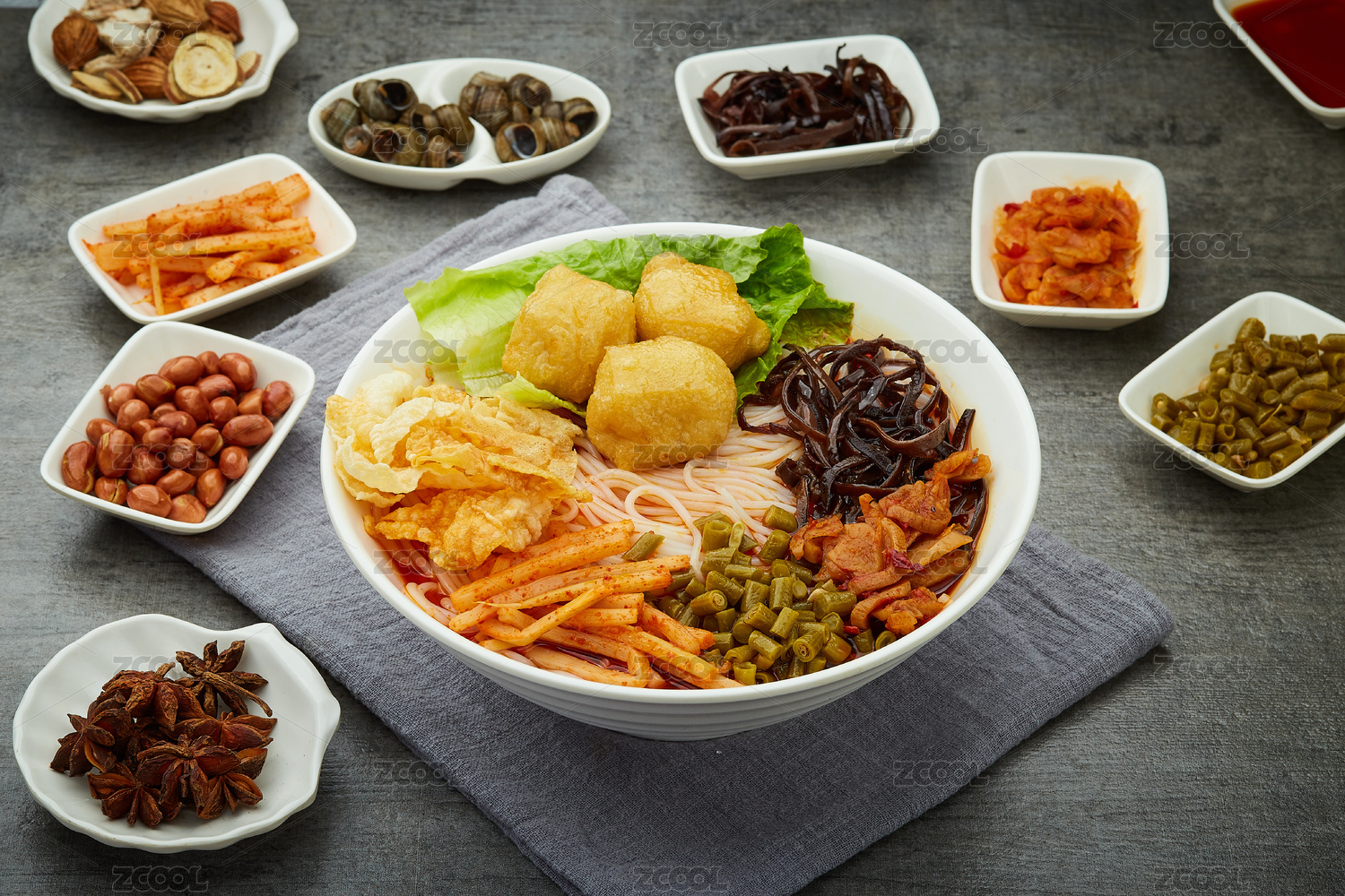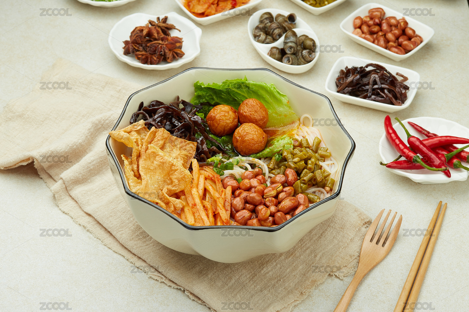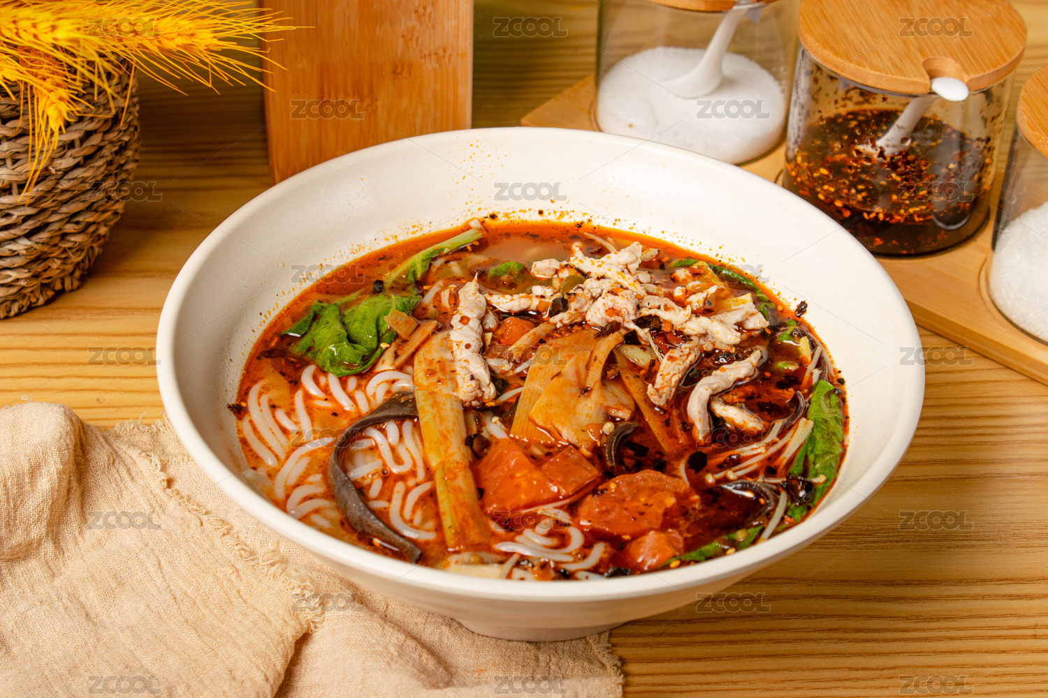 中國特色小吃肉片蔬菜酸辣粉酸辣米線插畫