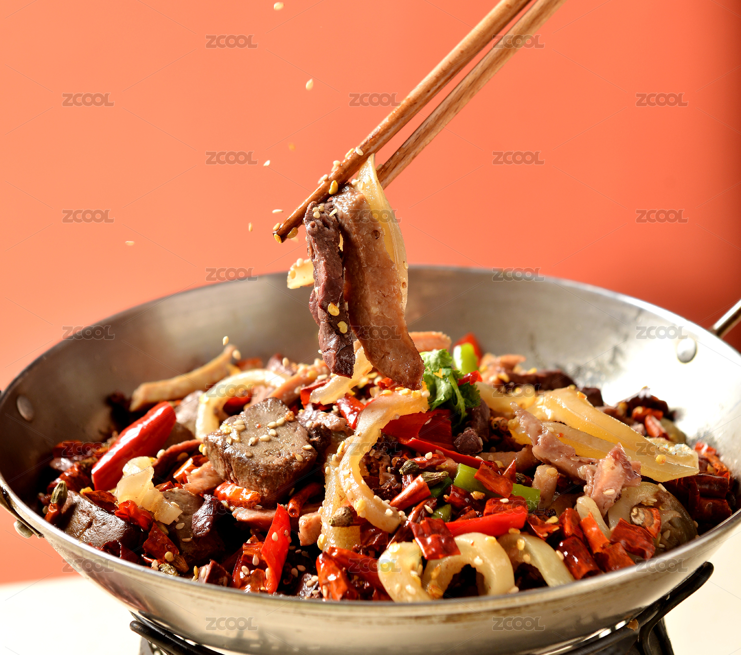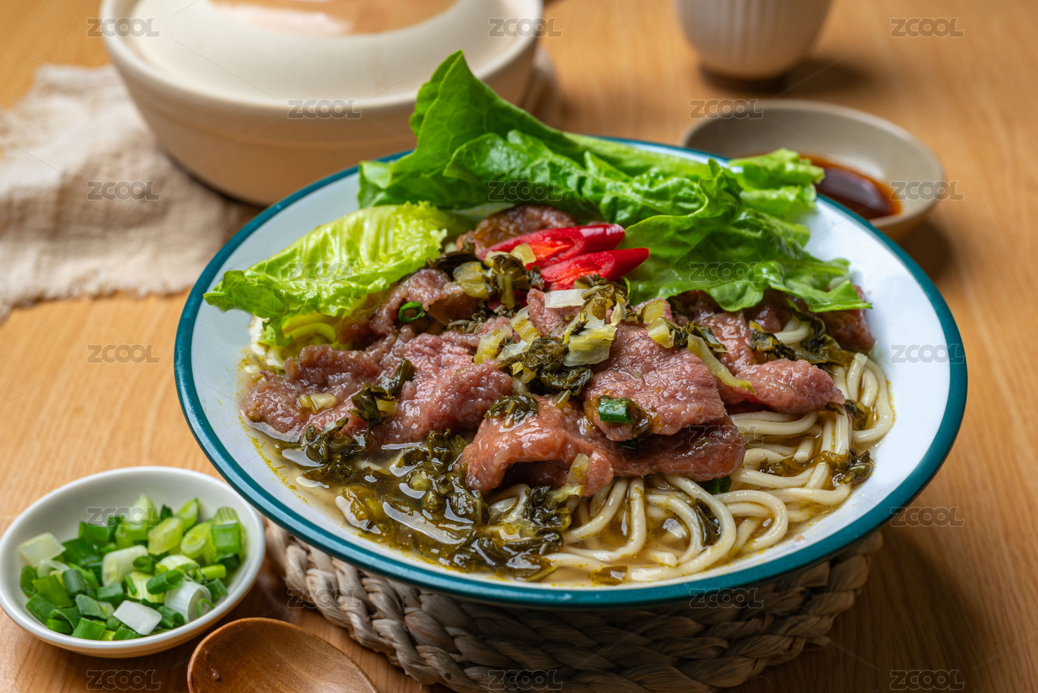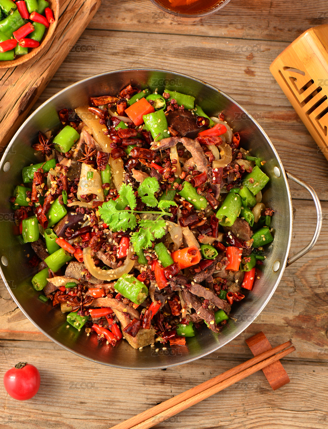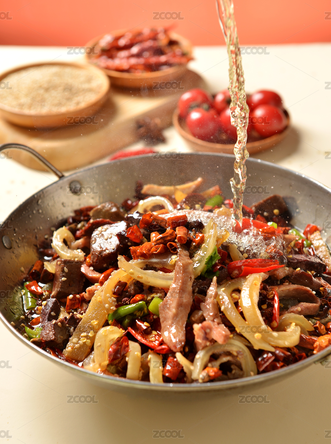 盤(pán)里切好的牛肉牛雜配麻辣火鍋湯底