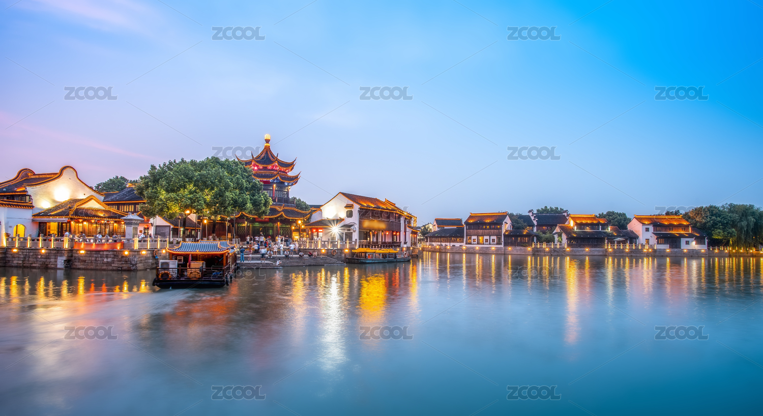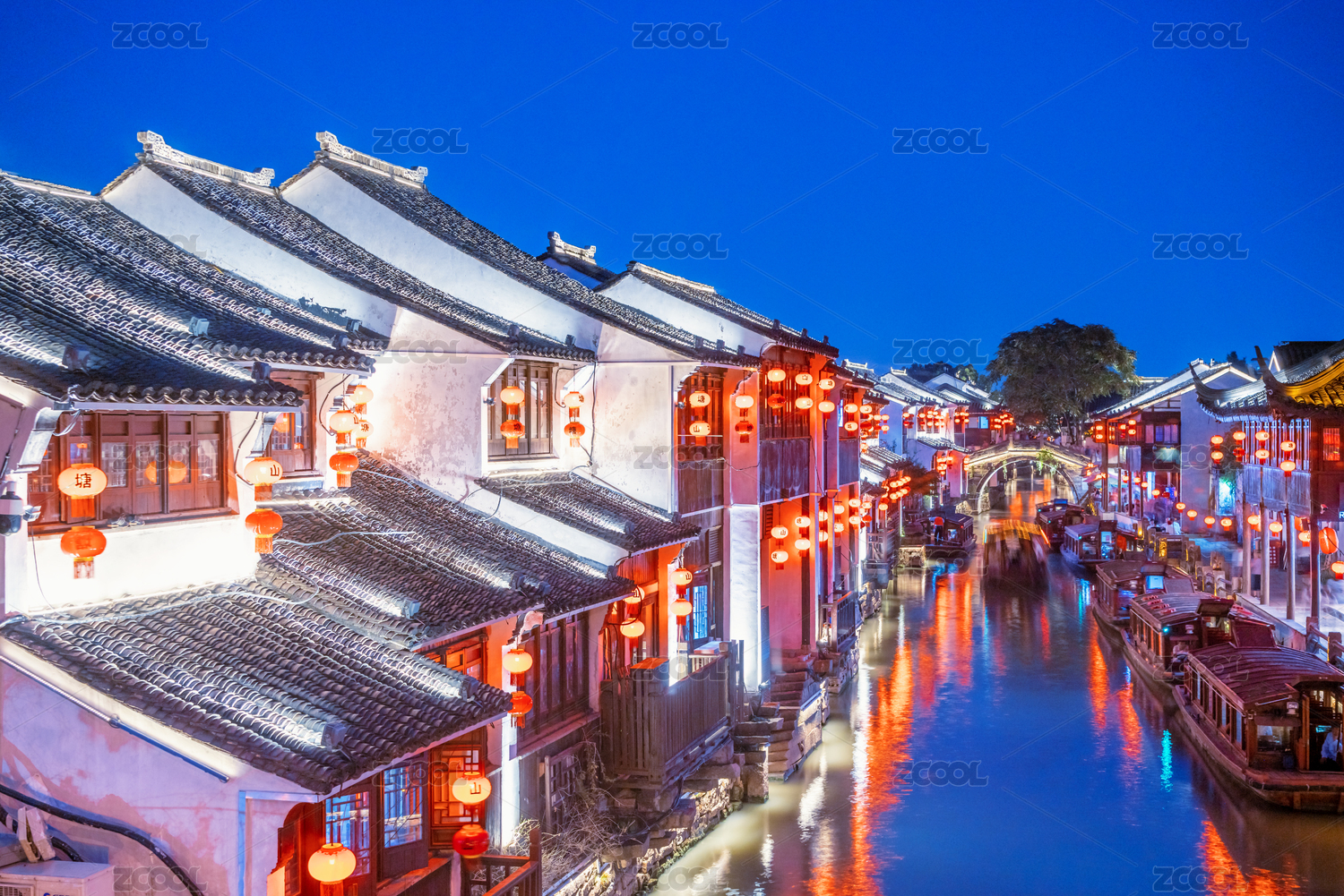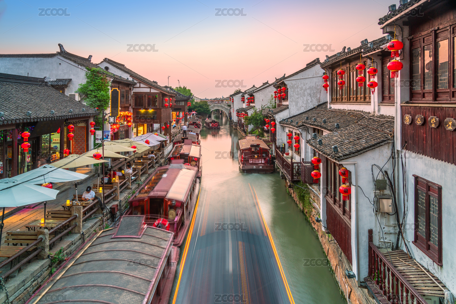 江蘇蘇州古鎮(zhèn)七里山塘街街景