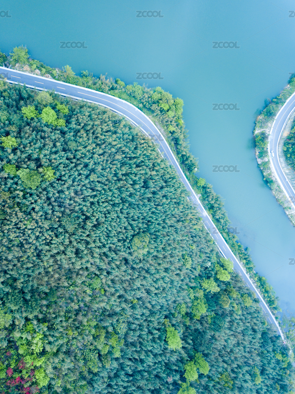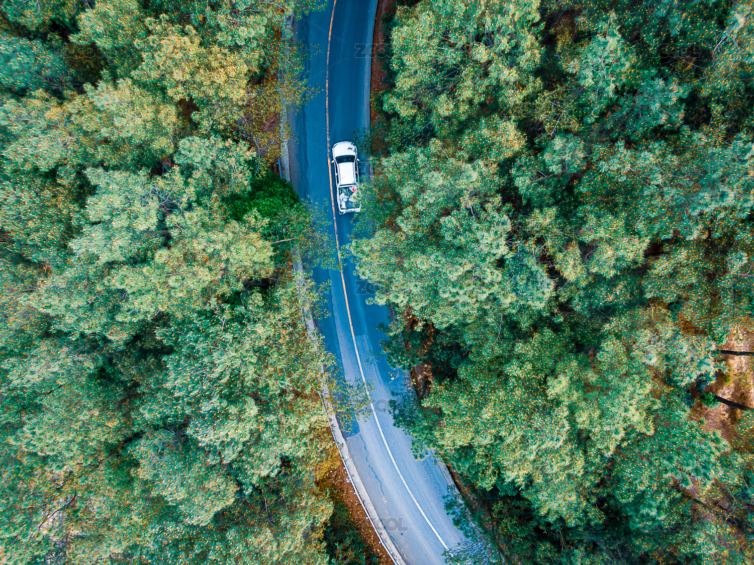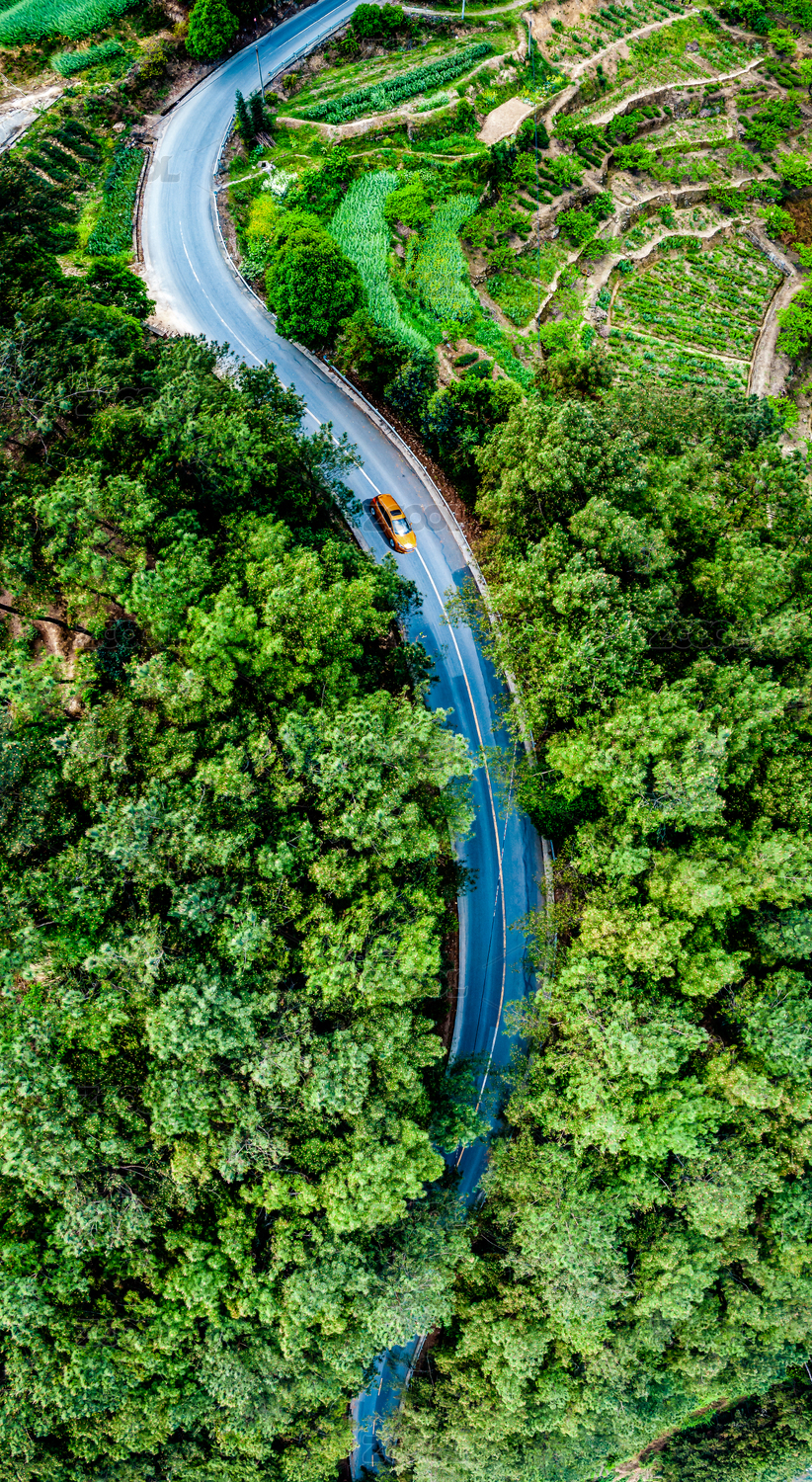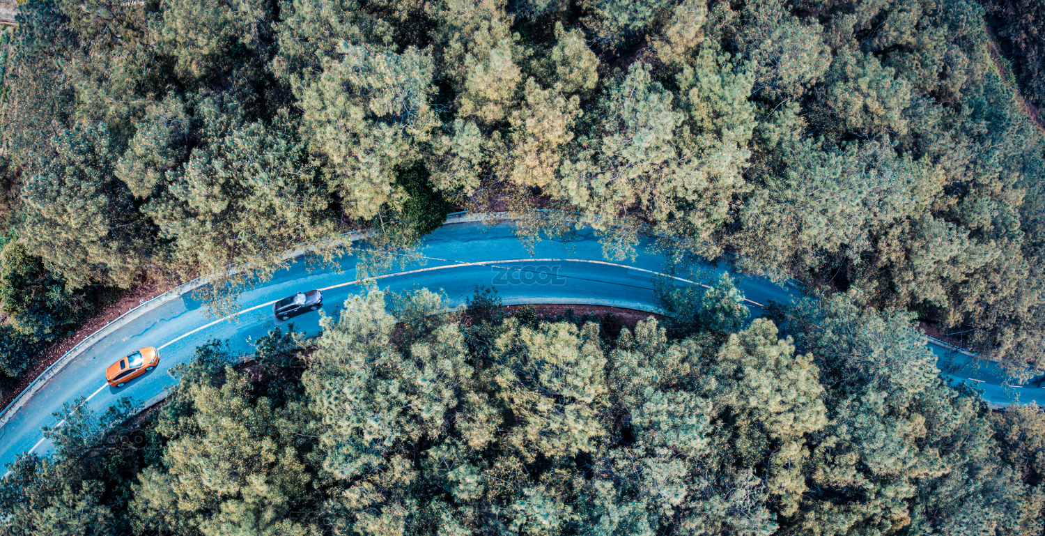 航拍森林公路車輛