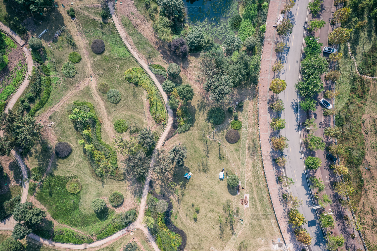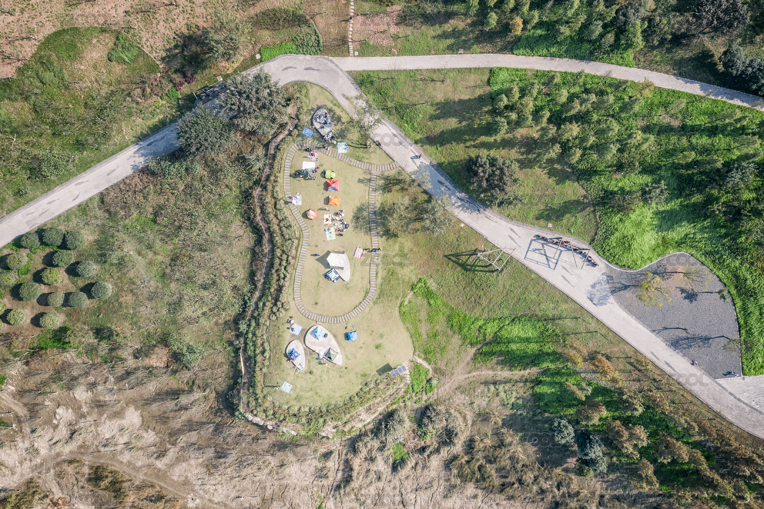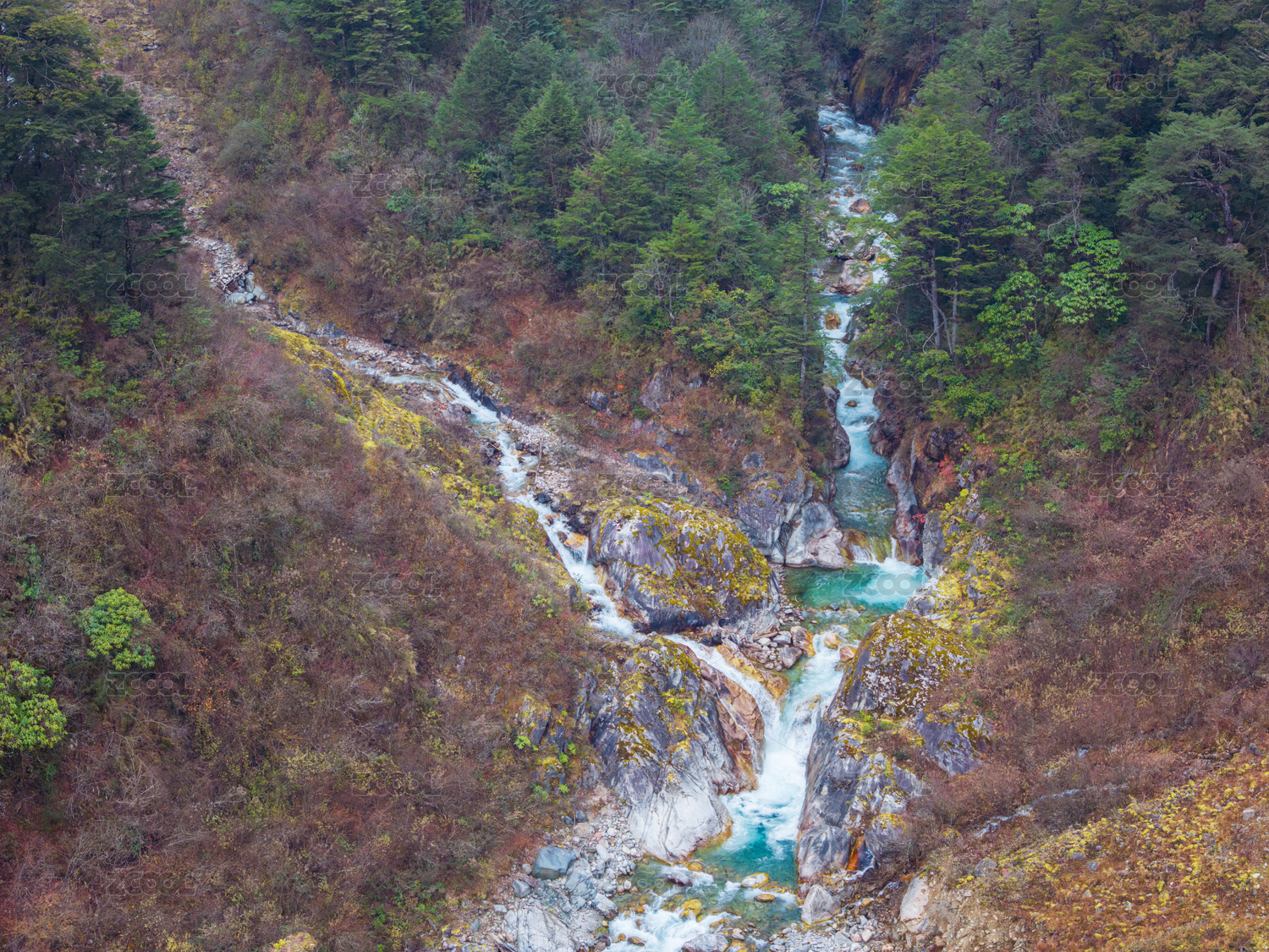 航拍森林里的溪流