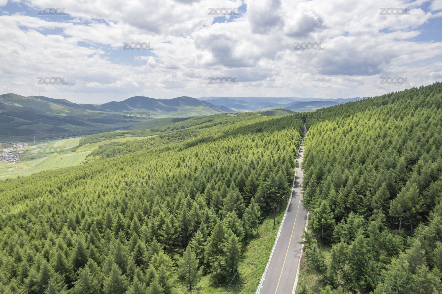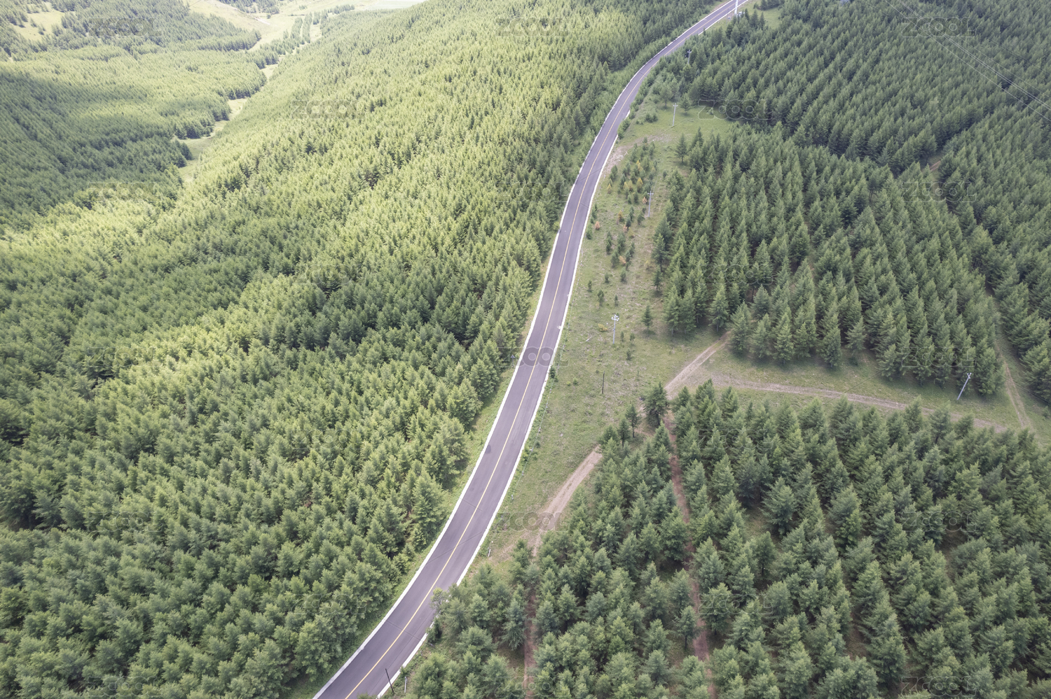 夏天草原天路航拍森林公路風(fēng)景