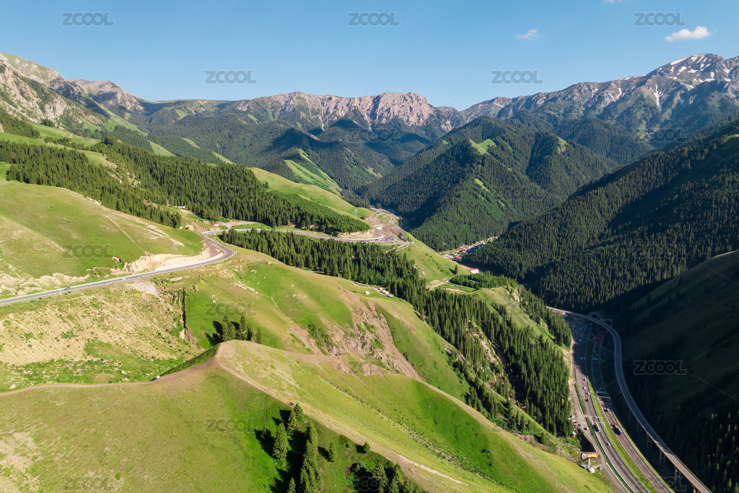 中國新疆伊犁果子溝航拍森林山脈自然風(fēng)光