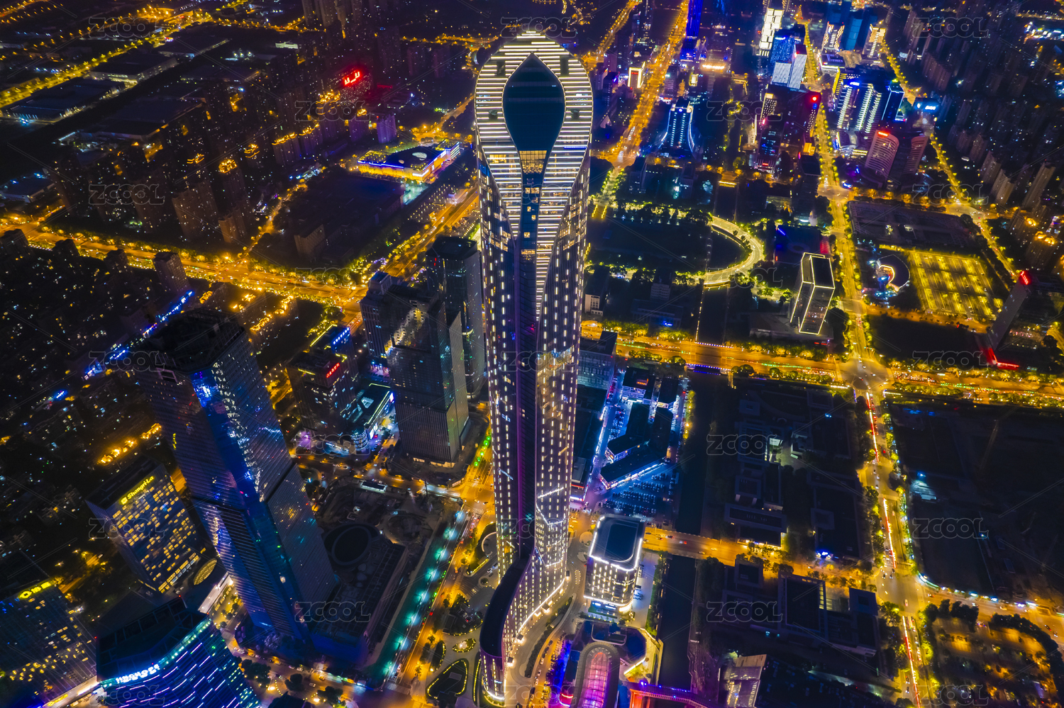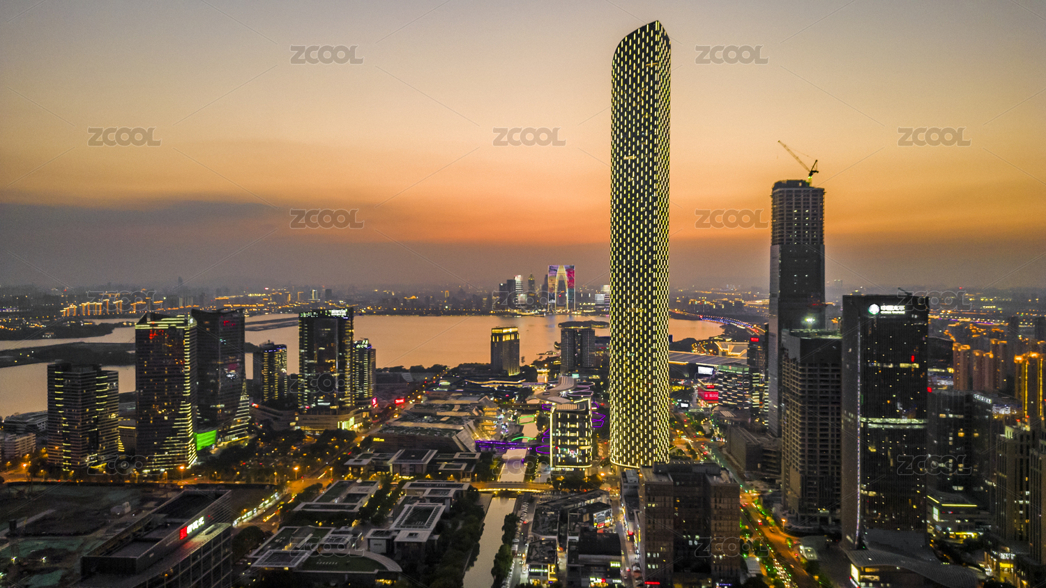 蘇州洲際酒店和國(guó)金中心夜景航拍