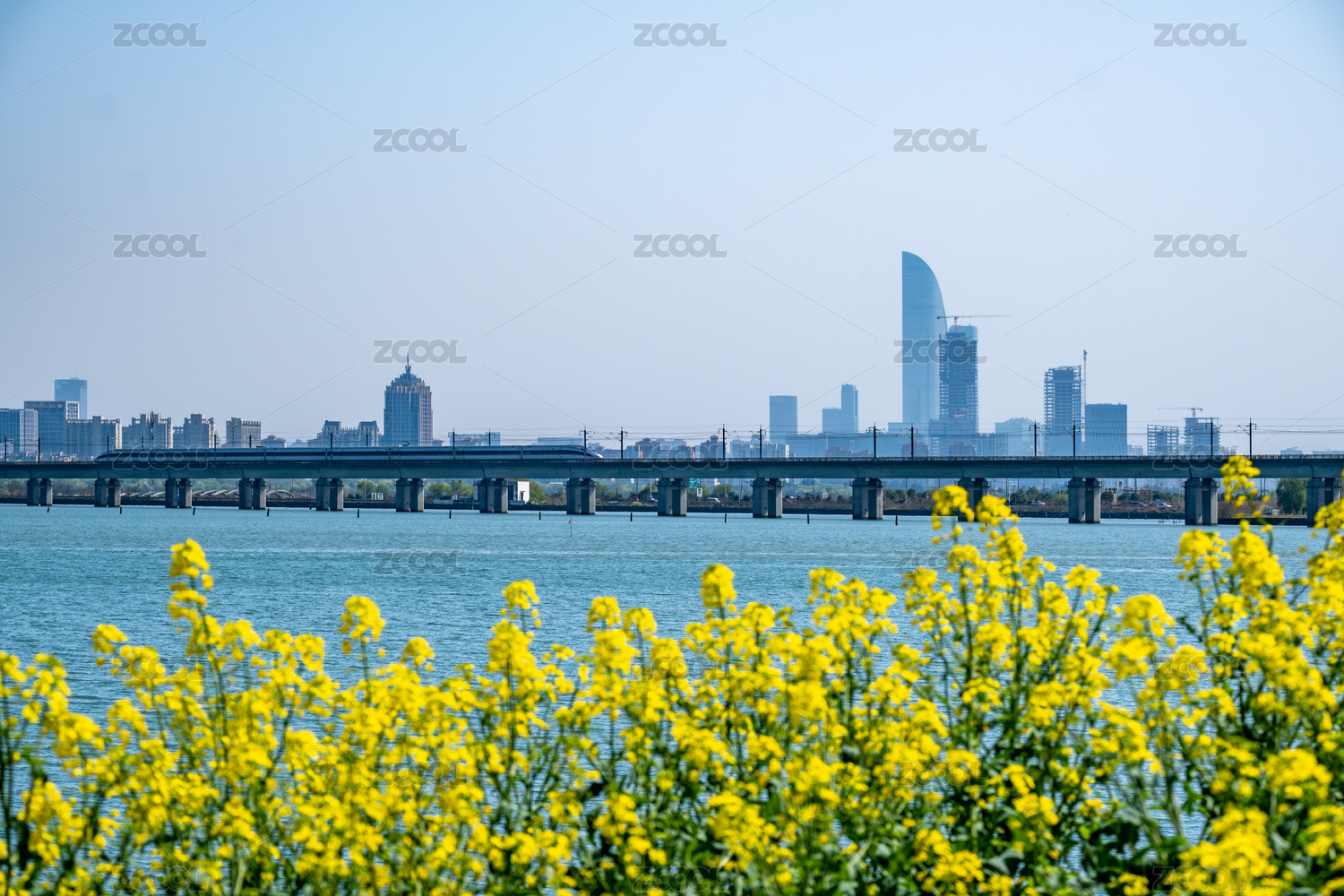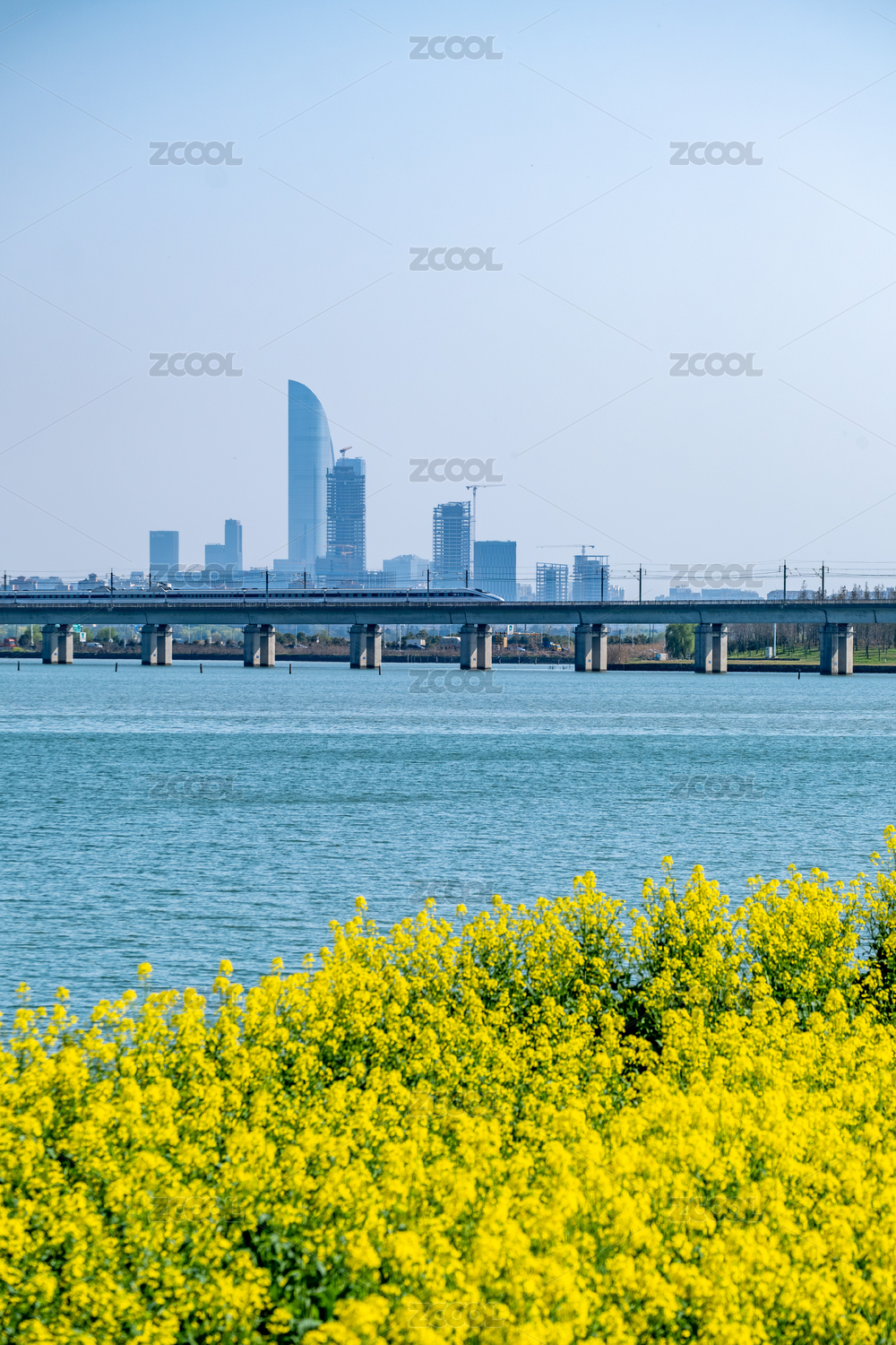春天的油菜花、高鐵、蘇州國(guó)金中心和陽澄湖