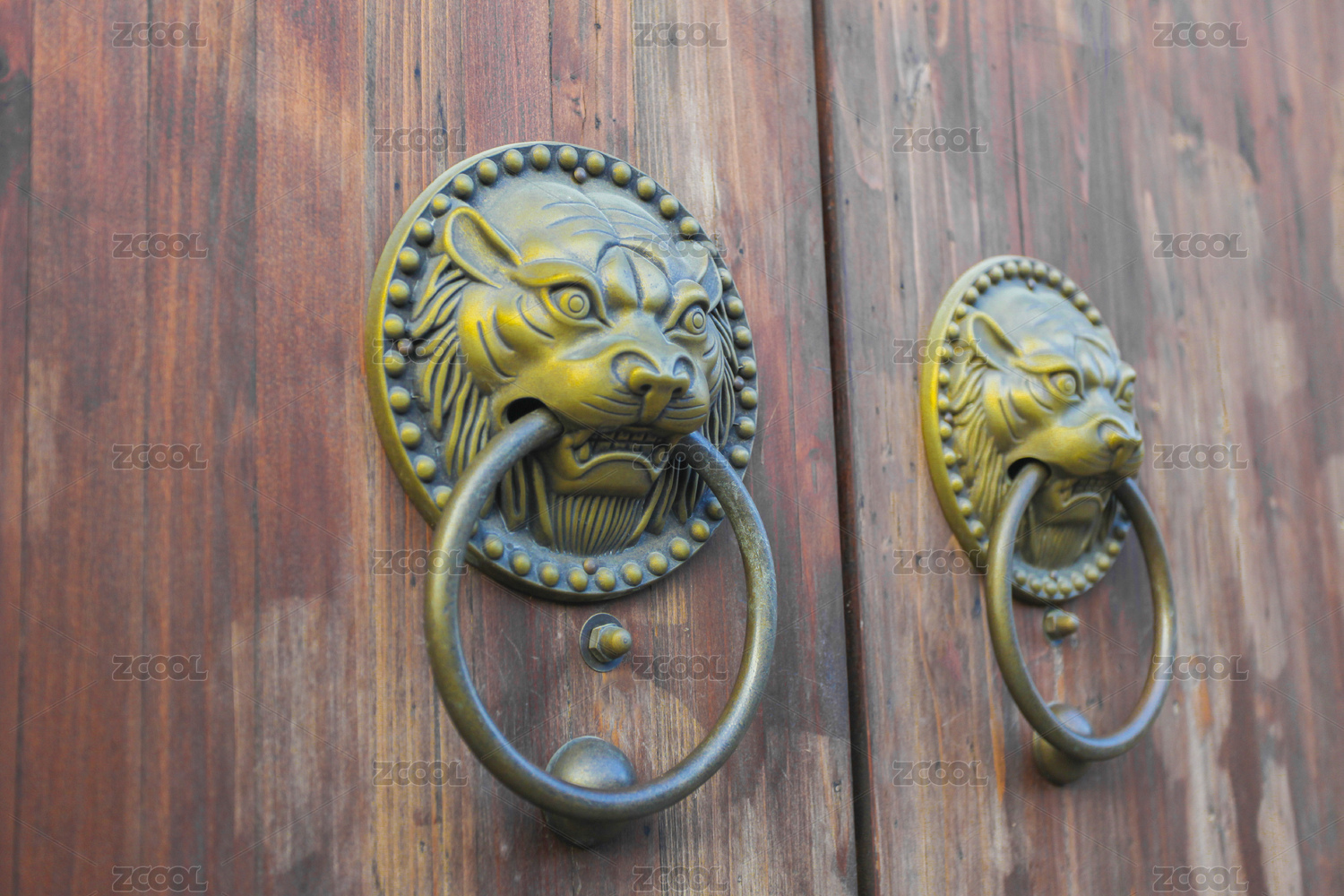 上海古鎮(zhèn)古街傳統(tǒng)住宅木門上的復古門環(huán)門鈸