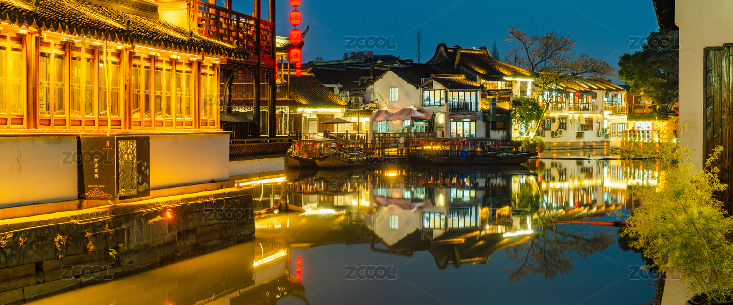 上海朱家角古鎮(zhèn)夜晚的江南民居