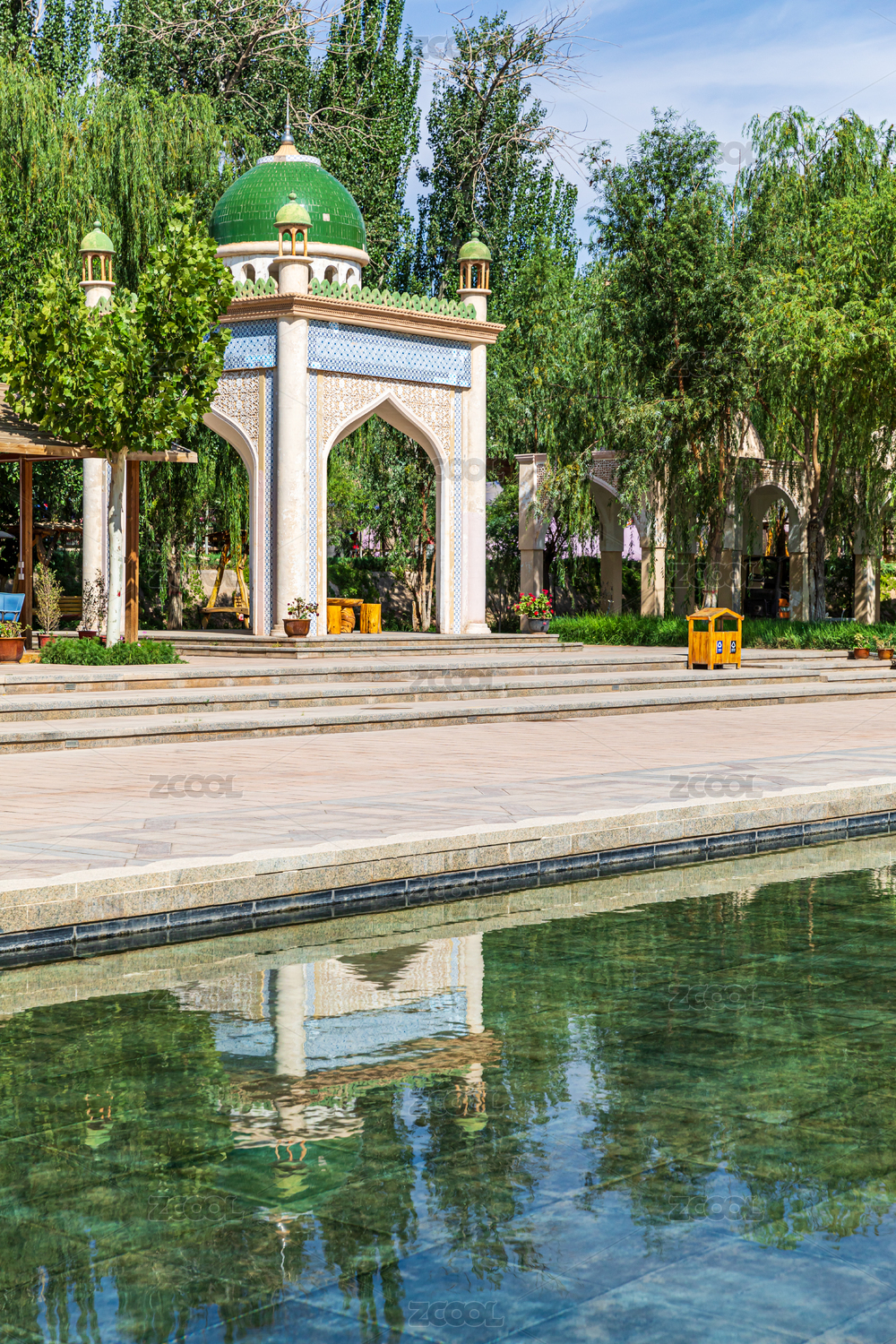 中國(guó)新疆喀什香妃園小廣場(chǎng)伊斯蘭風(fēng)格的建筑