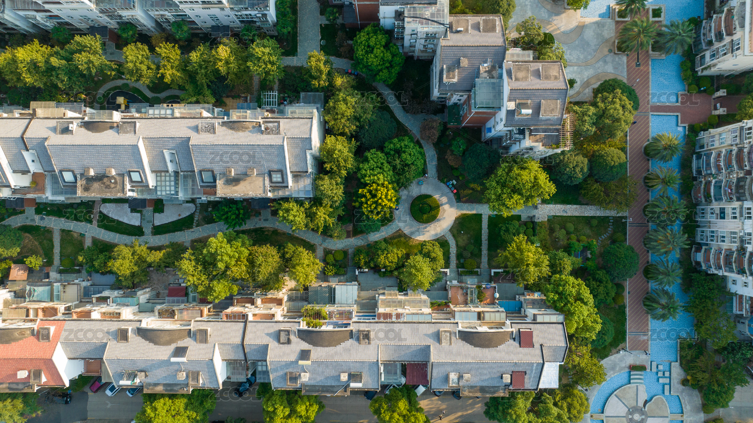 陽(yáng)光下的居民小區(qū)休閑廣場(chǎng)