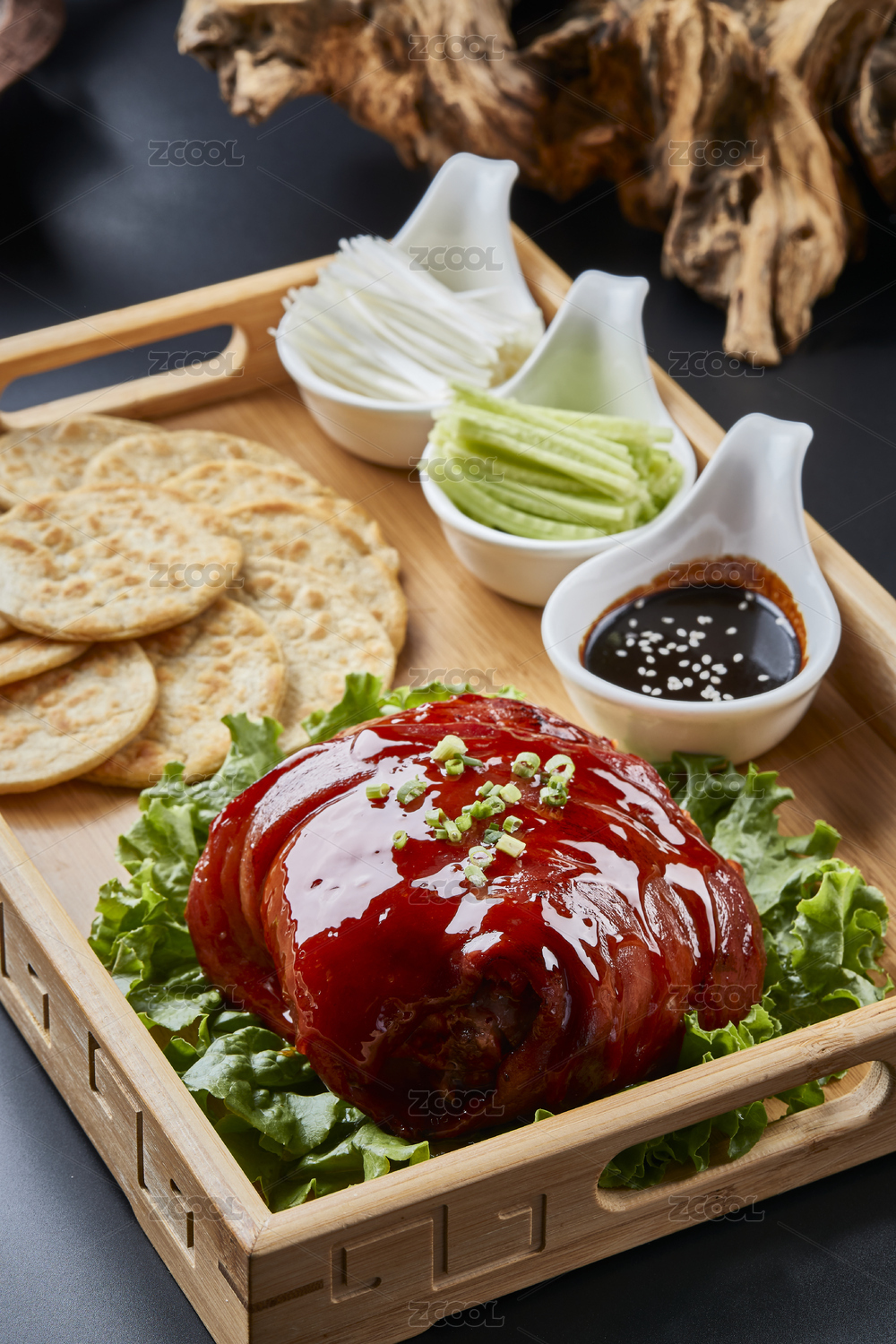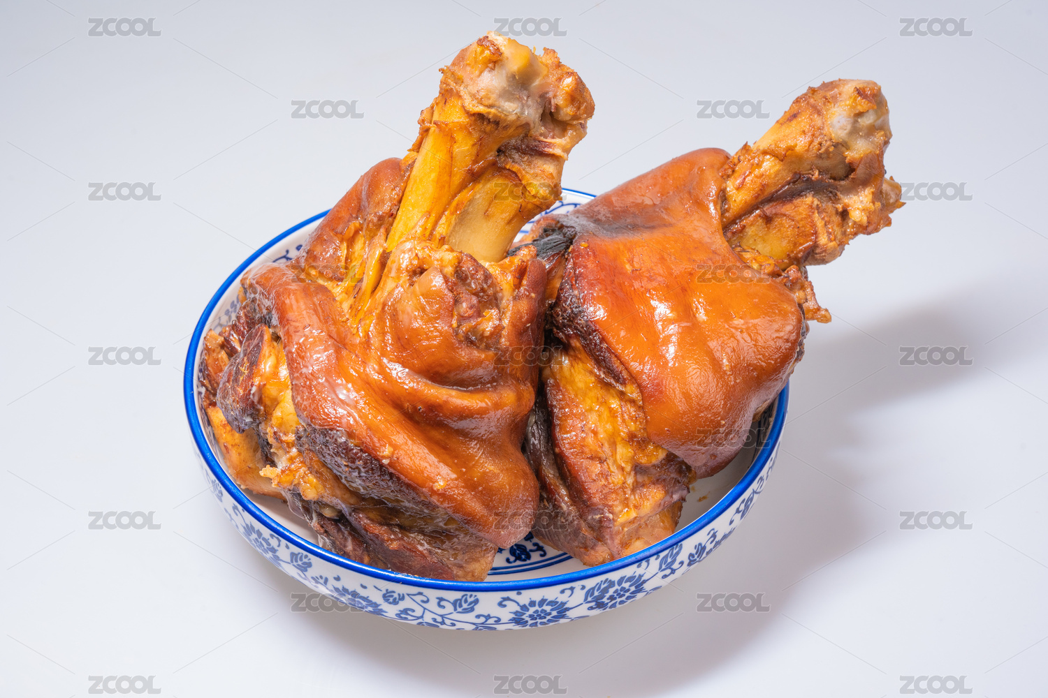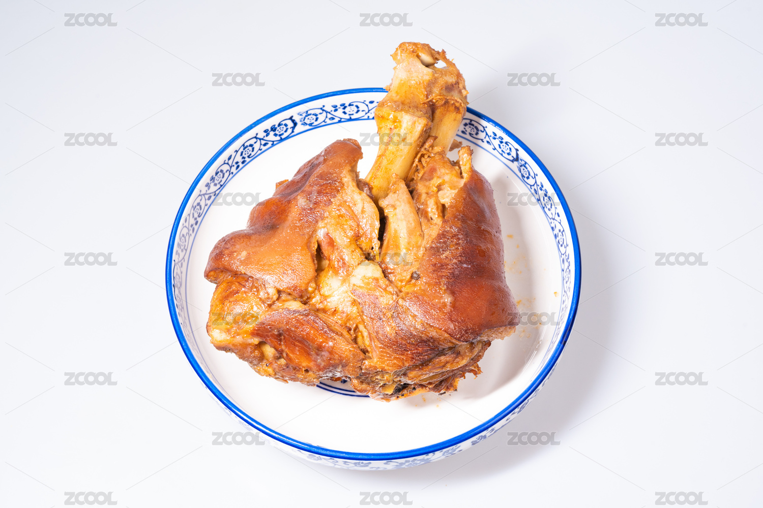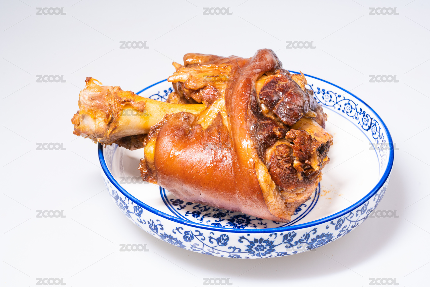 木質(zhì)餐具裝的雜糧餅時蔬配紅燒肘子