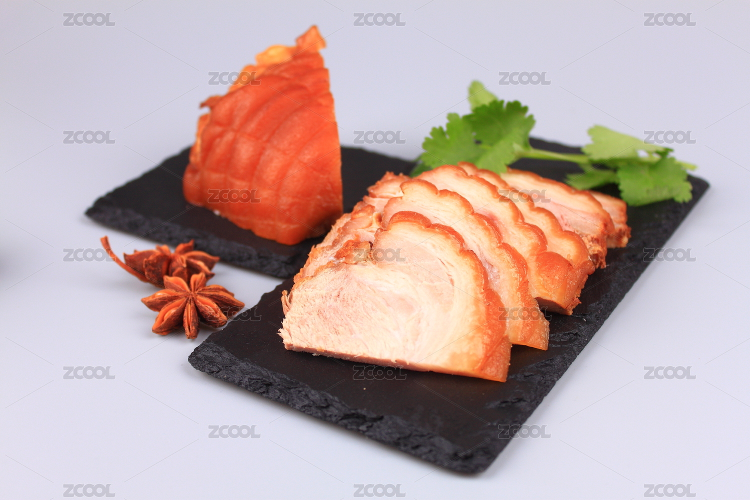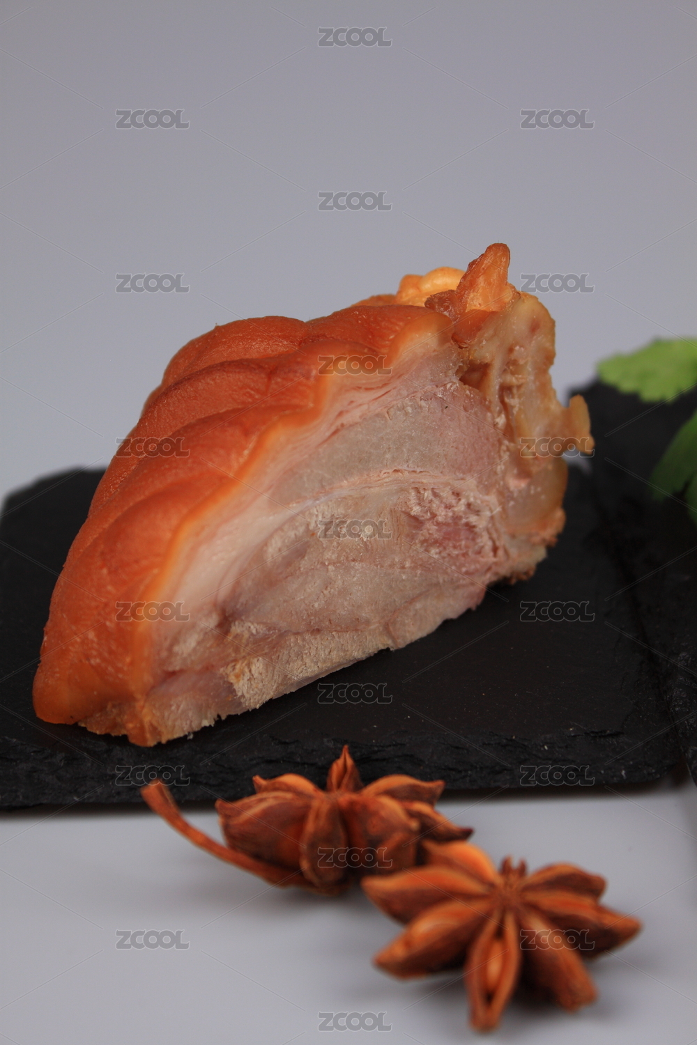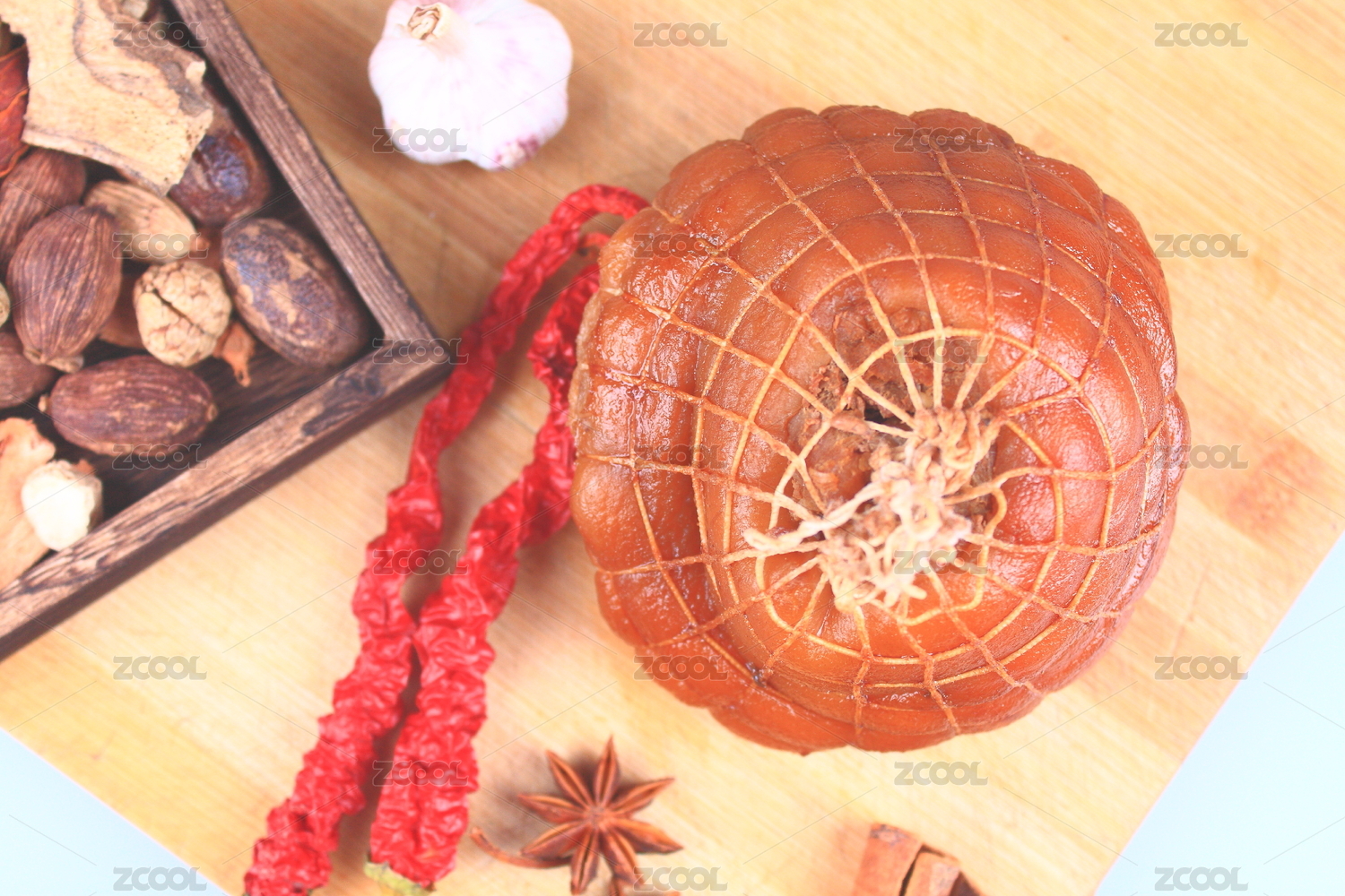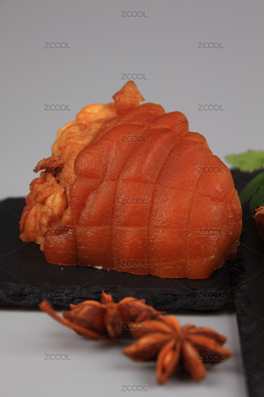 木質(zhì)餐具裝的雜糧餅時蔬配紅燒肘子