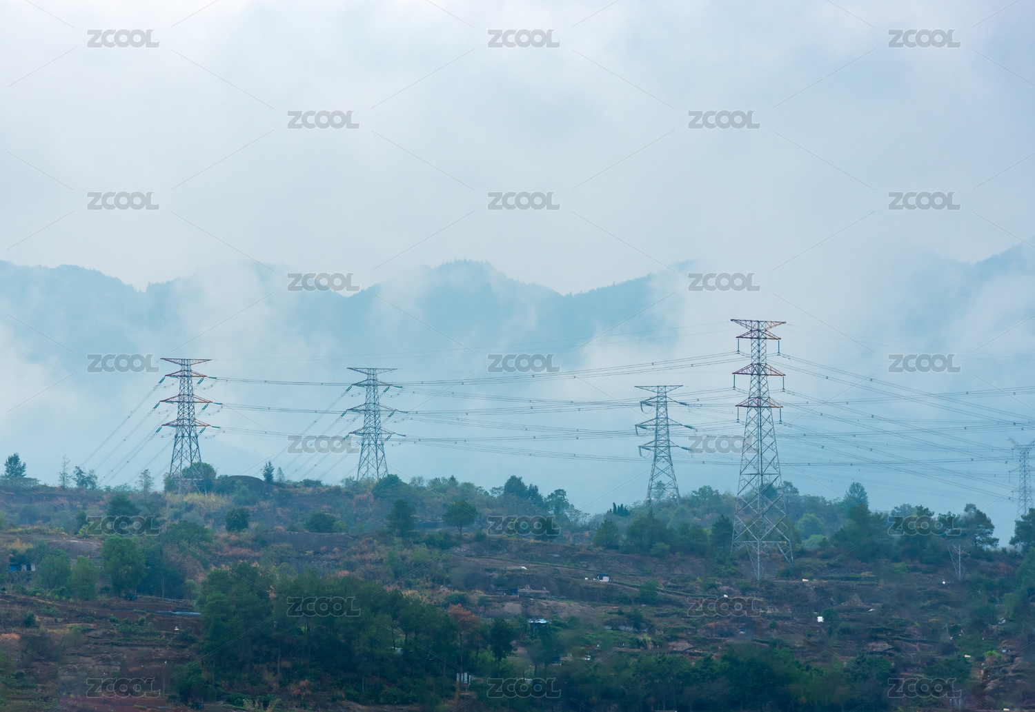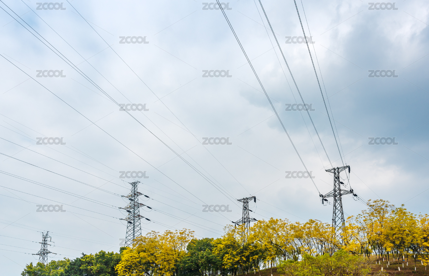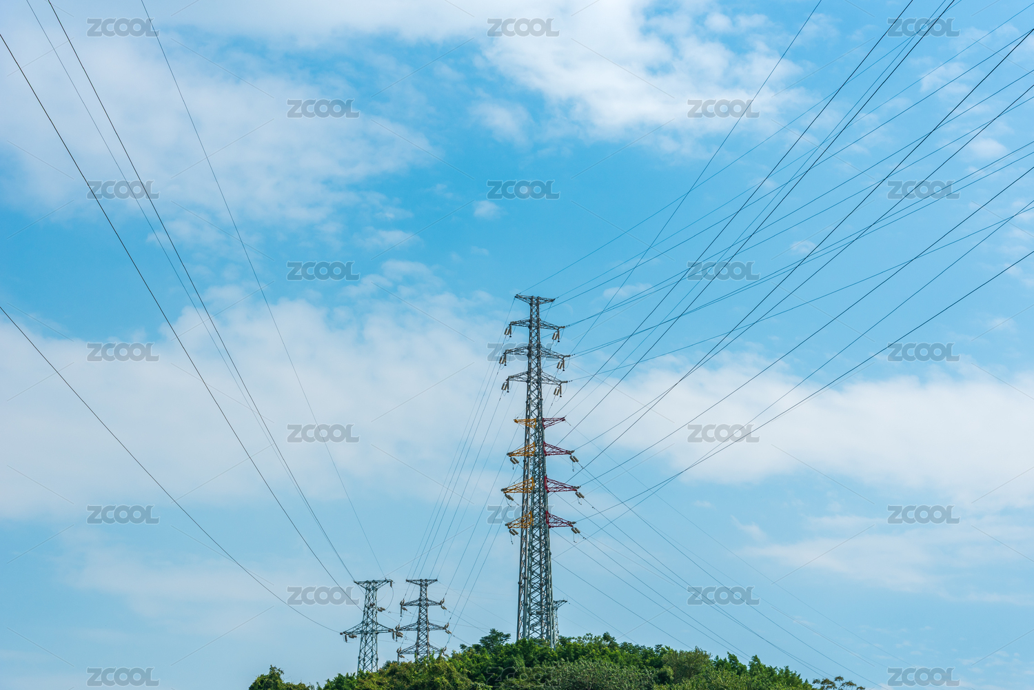 重慶兩江新區(qū)粉黛山公園山頂上的高壓線塔