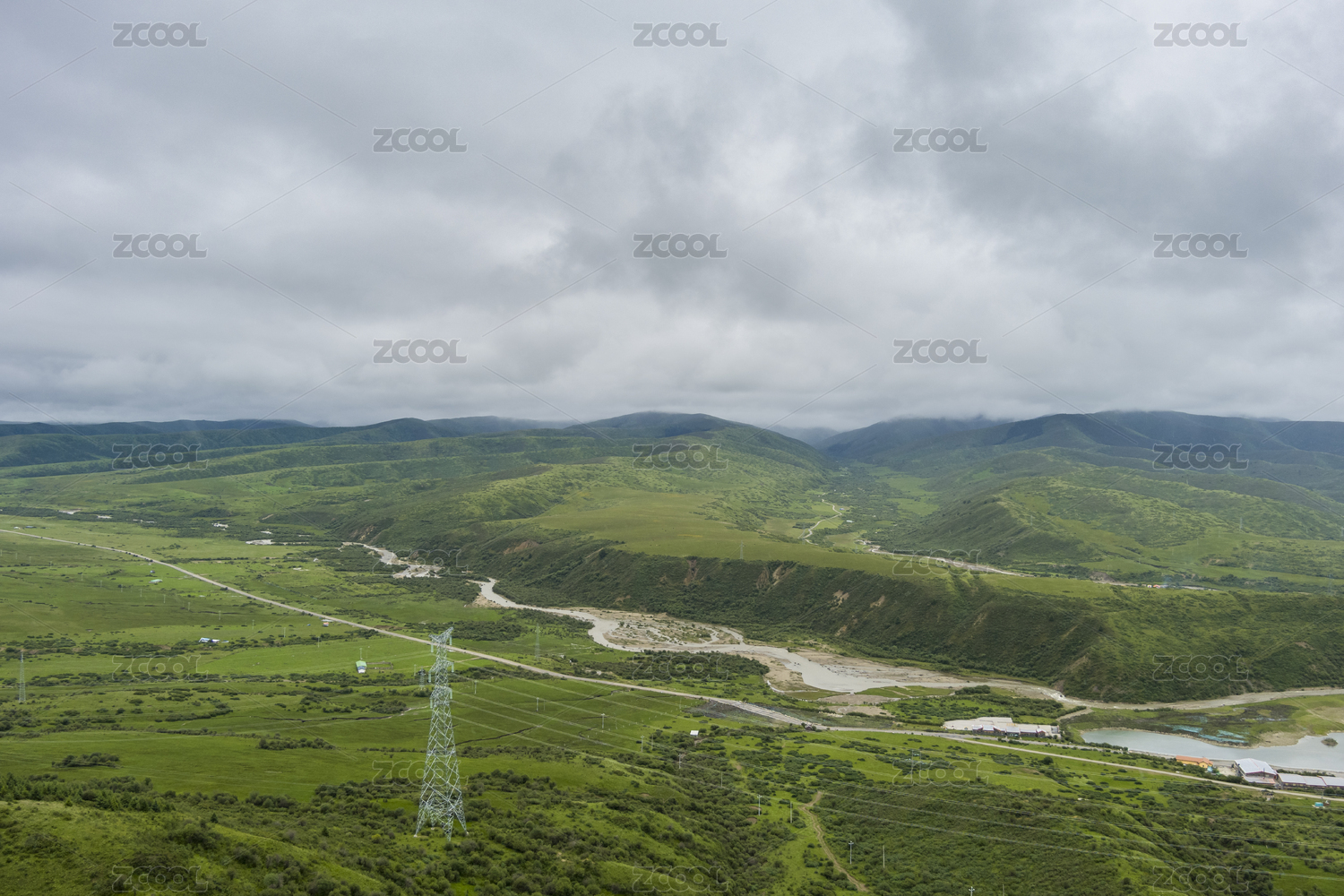 重慶北碚水土街道安置房后的高壓線塔與山脈