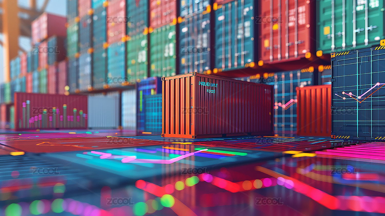 彩色積木工程師指揮吊車建設自由貿(mào)易區(qū)FTZ英文字母
