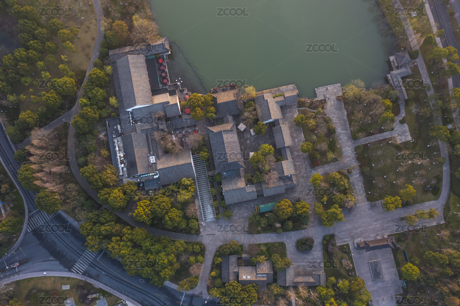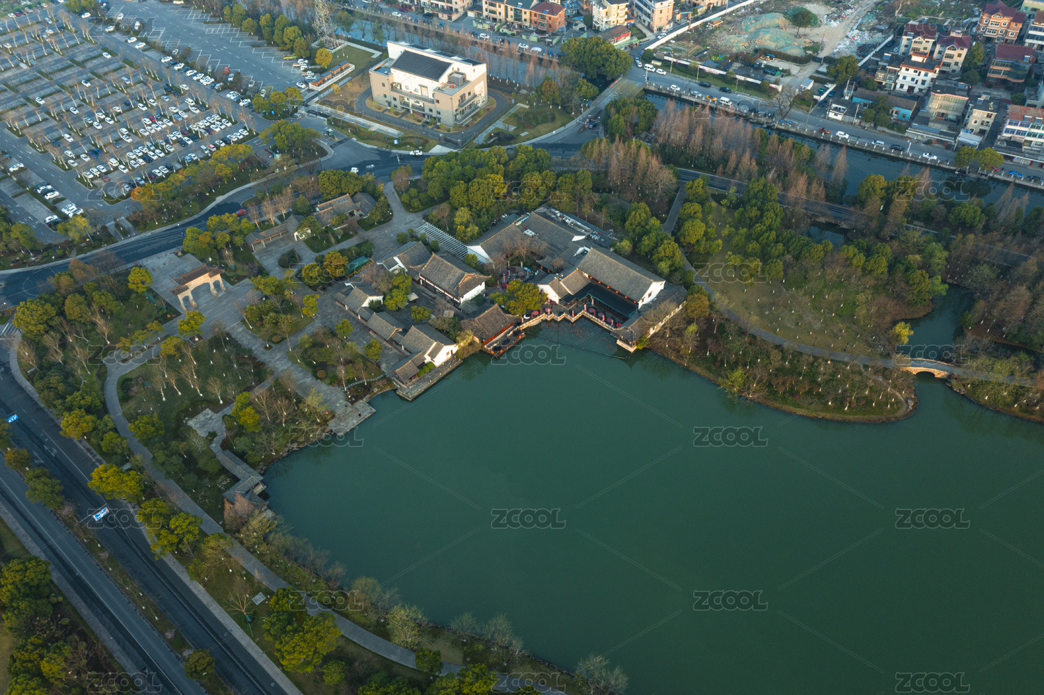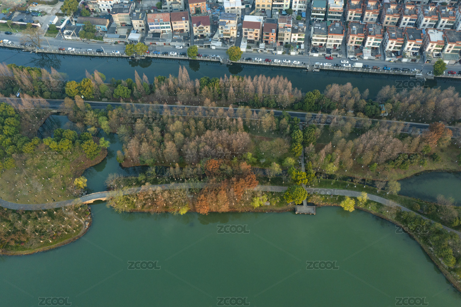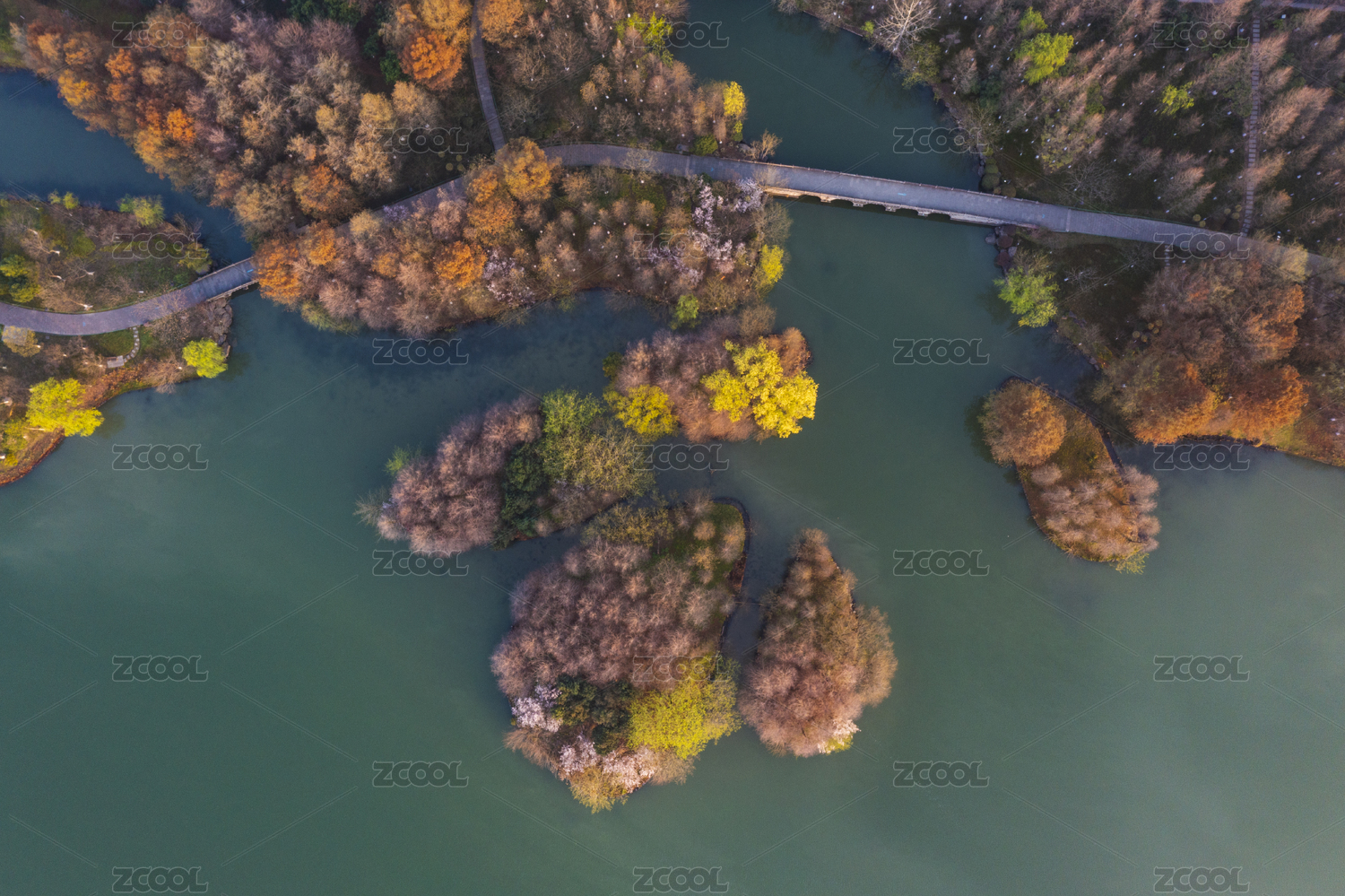浙江省杭州市湘湖景區(qū)秋色晨曦航拍