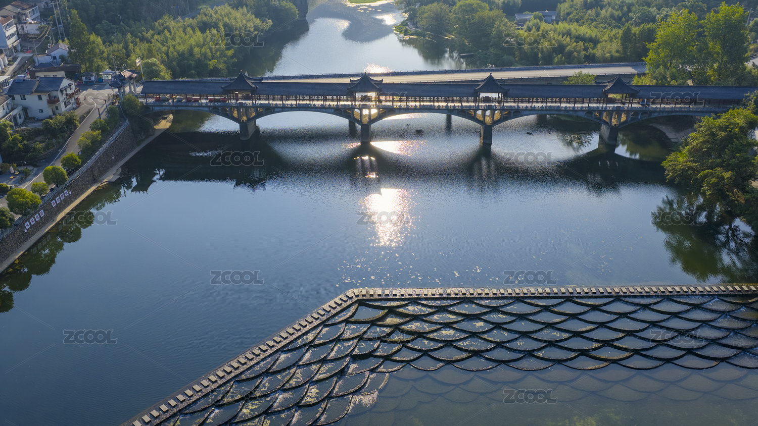 杭州富陽龍鱗壩清晨航拍風(fēng)光