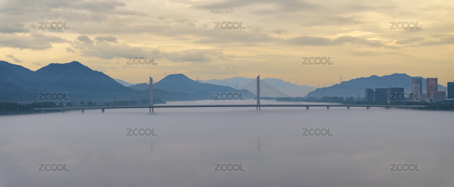 杭州富陽富春江晨霧航拍