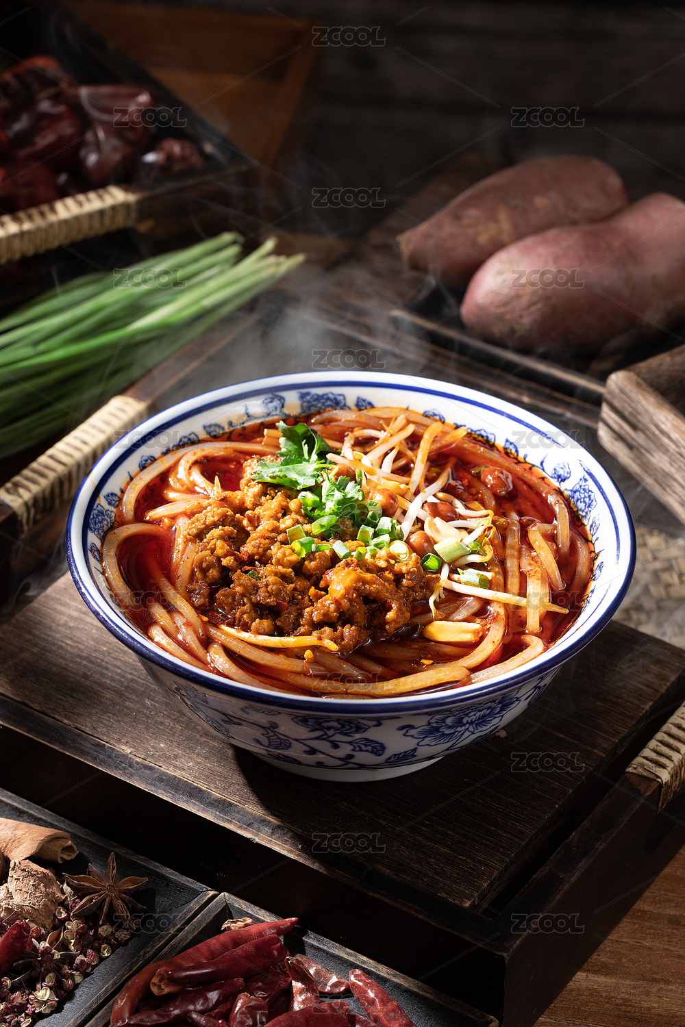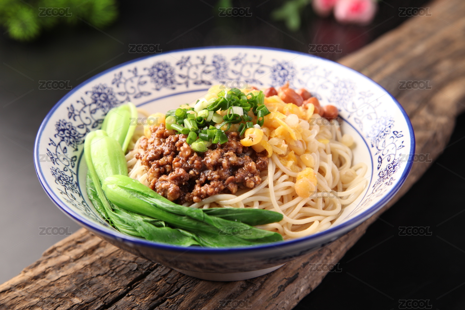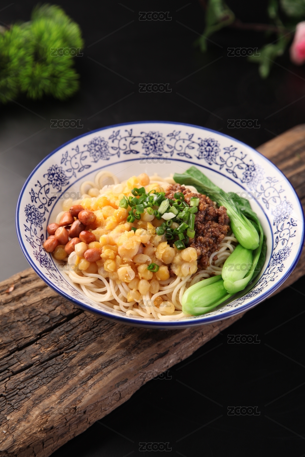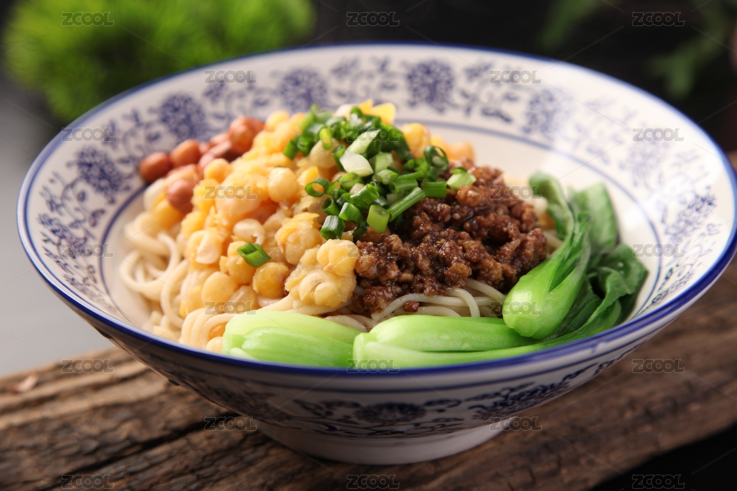 青花瓷碗里的小吃雜醬米線雜醬面麻辣苕皮