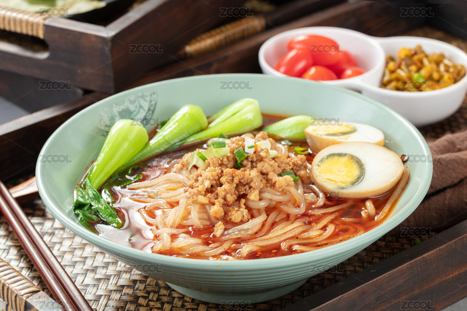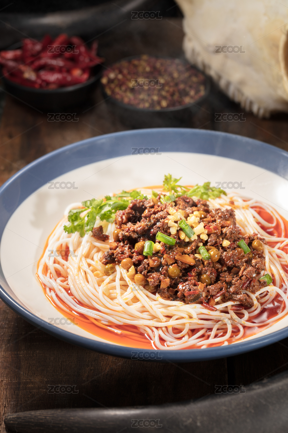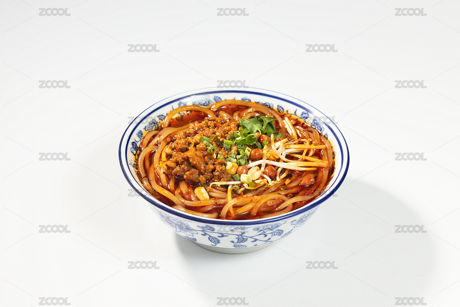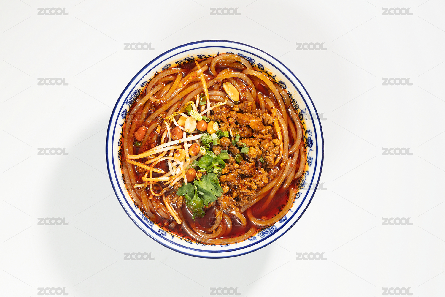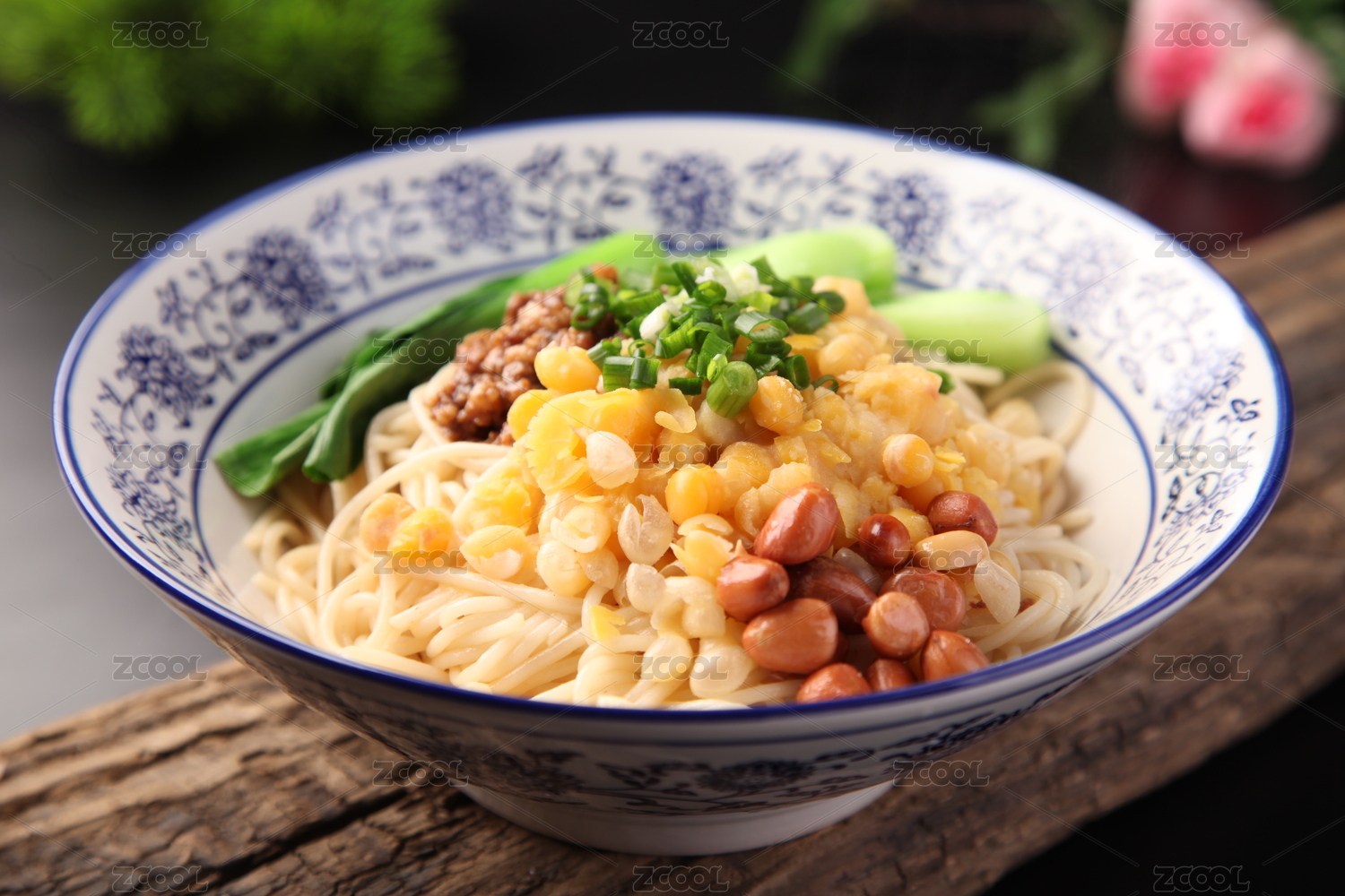 青花瓷碗里的小吃雜醬米線雜醬面麻辣苕皮
