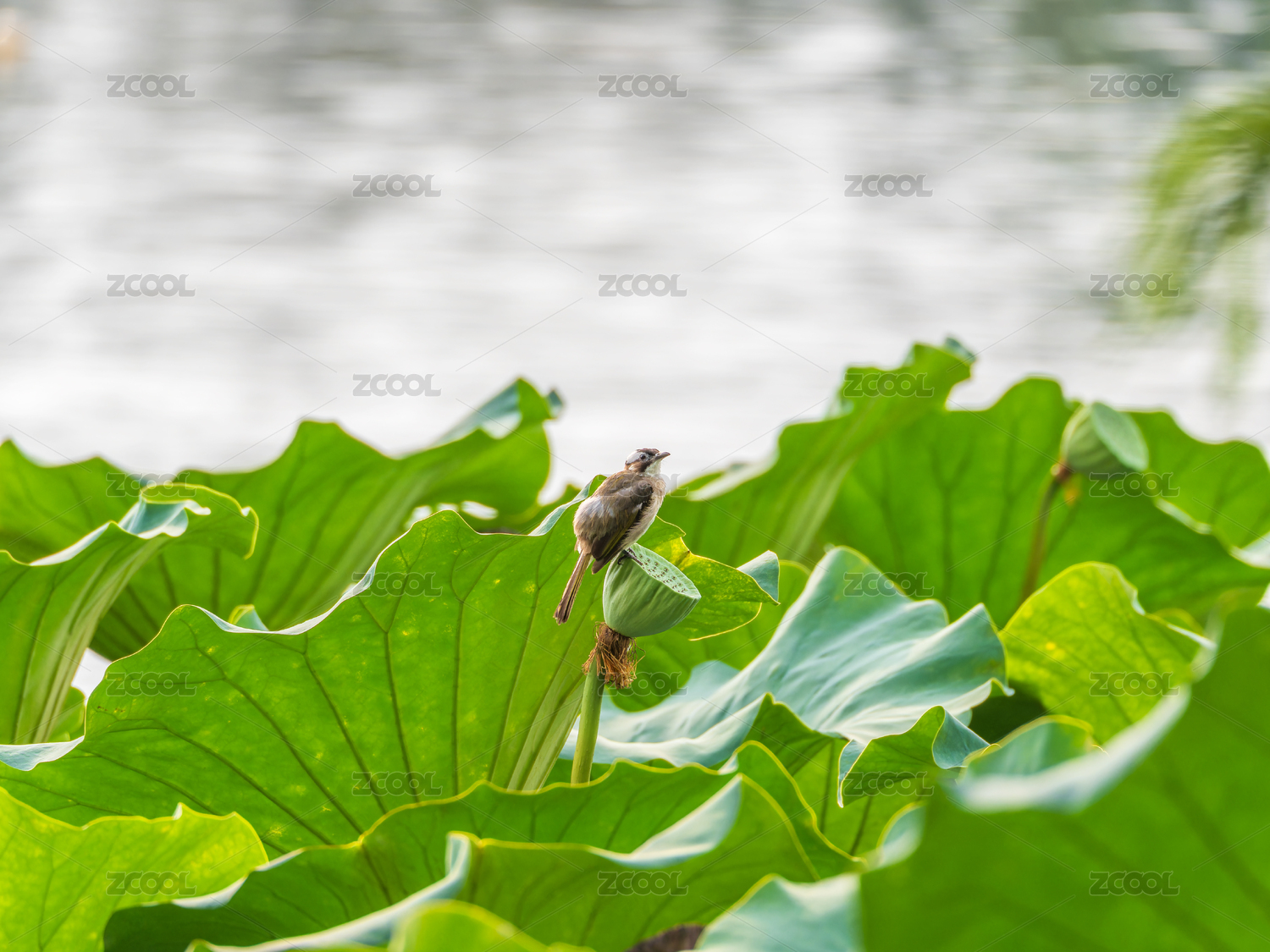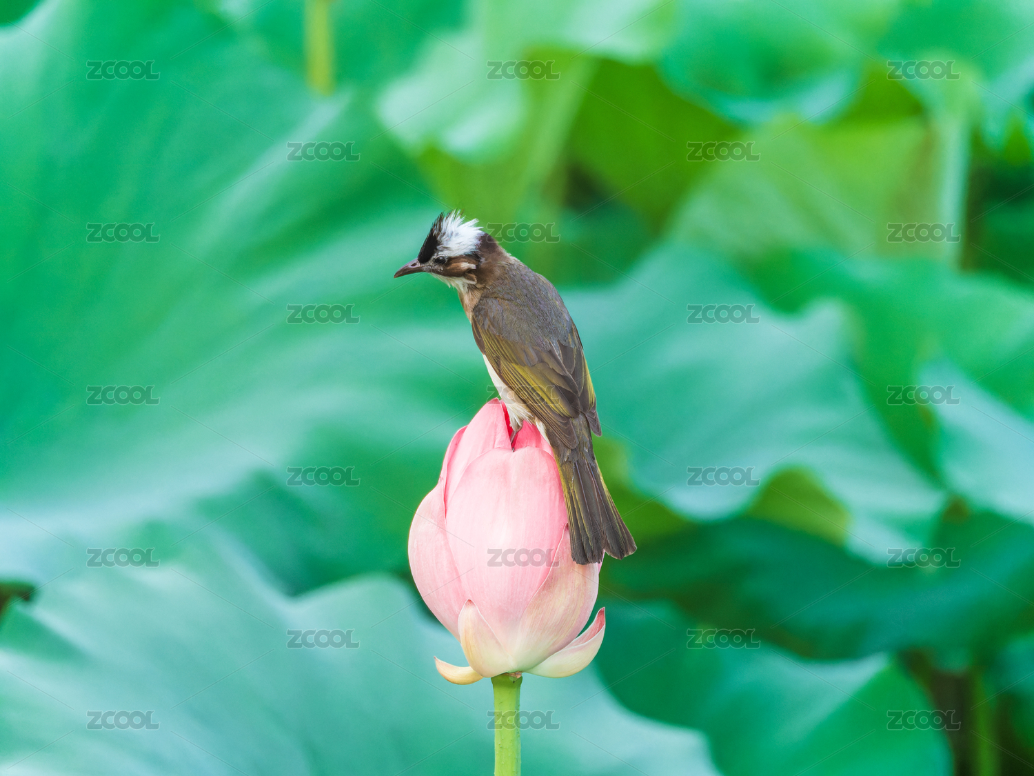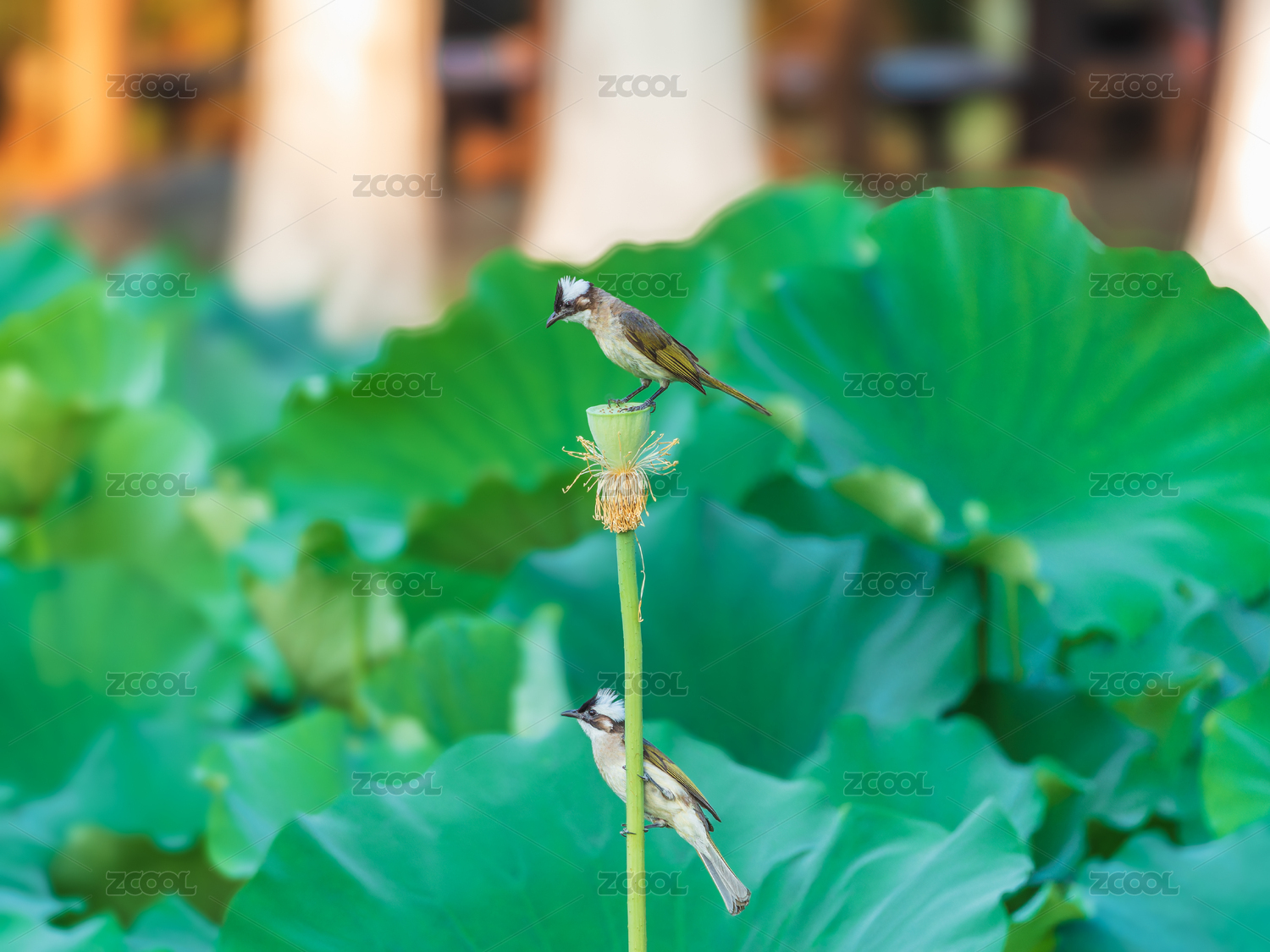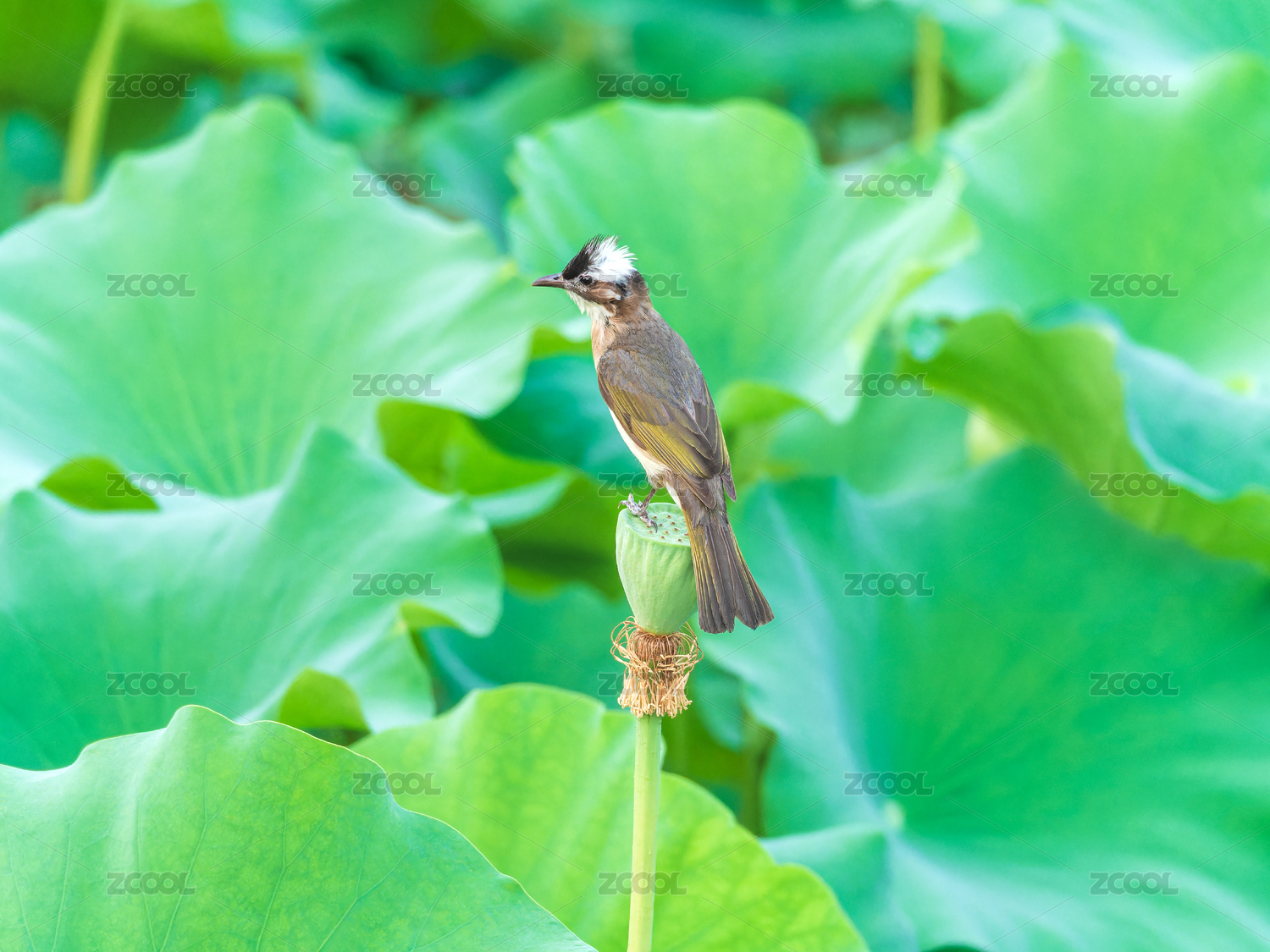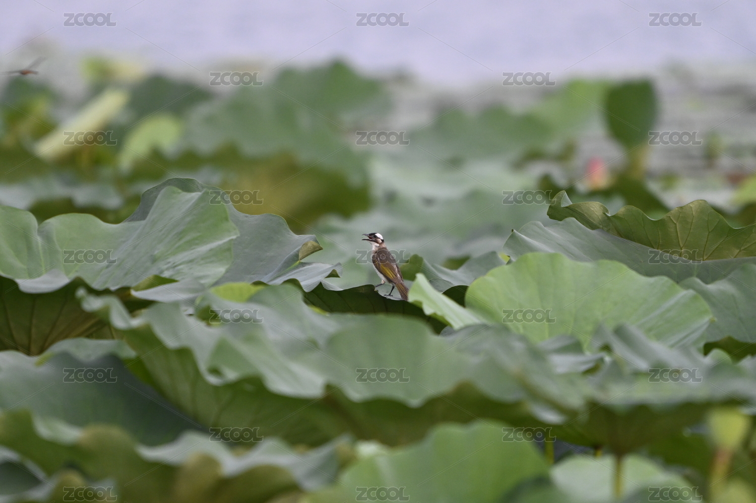 白頭鵯白頭翁荷花荷葉上的小鳥